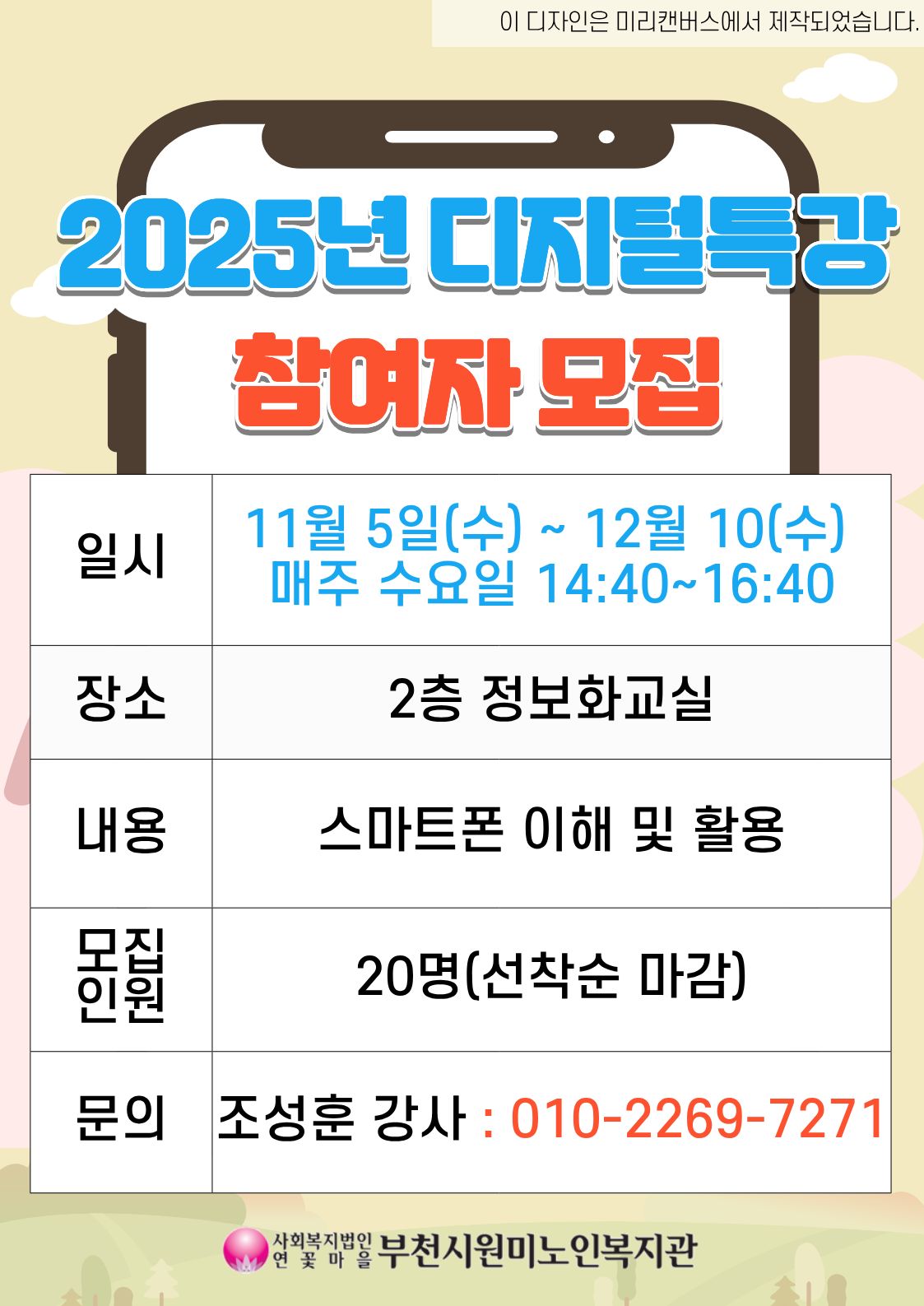 원미노인복지관 스마트폰 특강 참여 안내