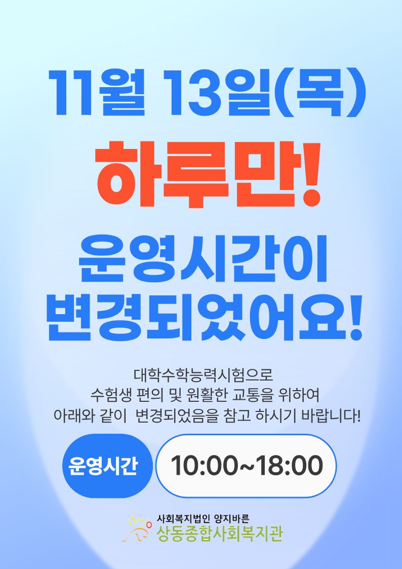 [상동] 상동종합사회복지관 운영시간 변경 안내