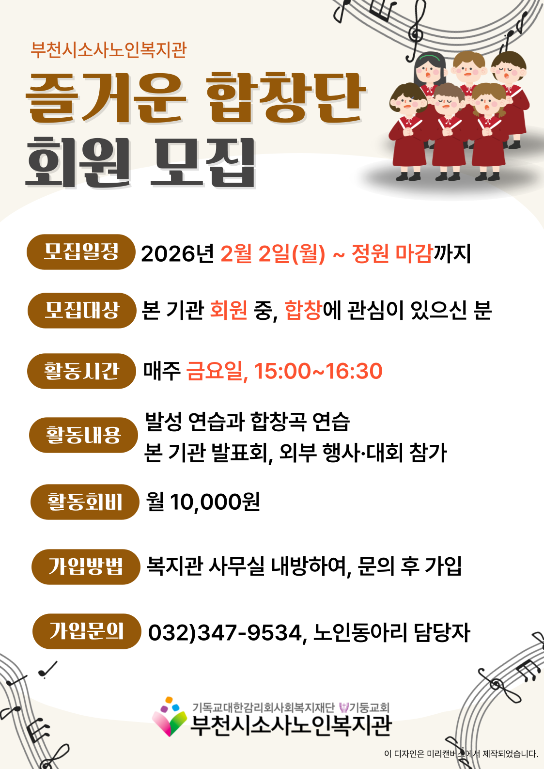 [노년사회화교육사업] 노인동아리 '즐거운 합창단' 단원 모집