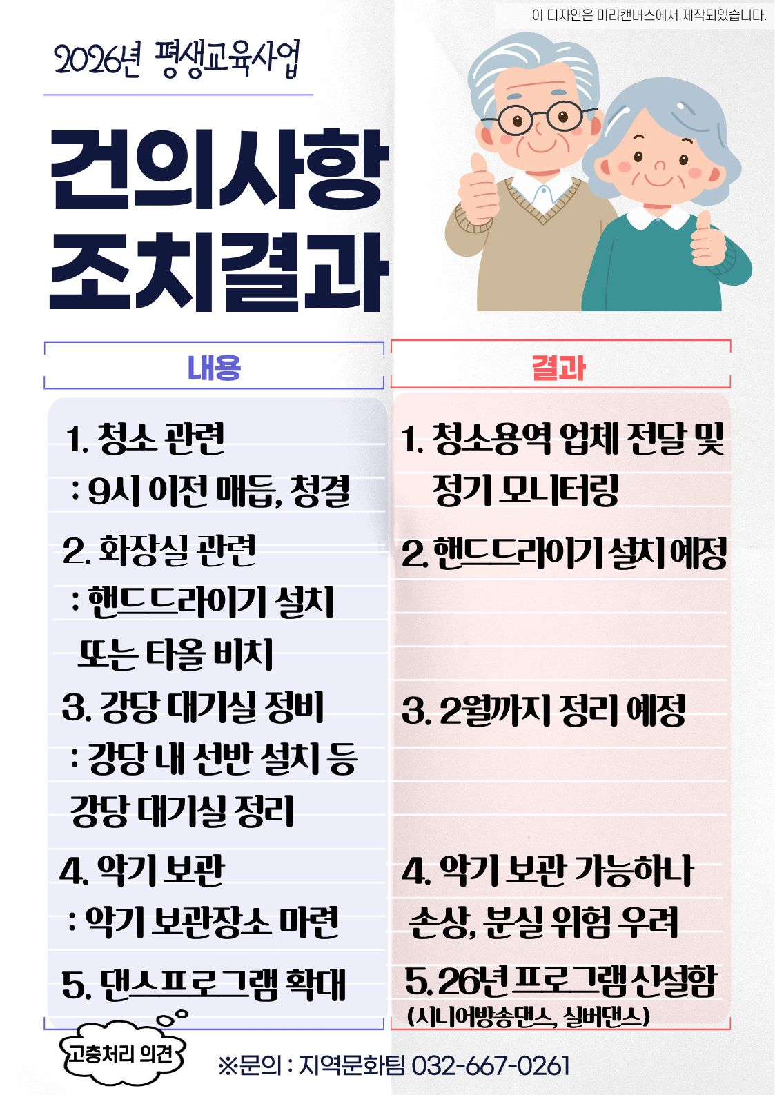 평생교육사업 과목별대표간담회 건의사항 조치결과 안내