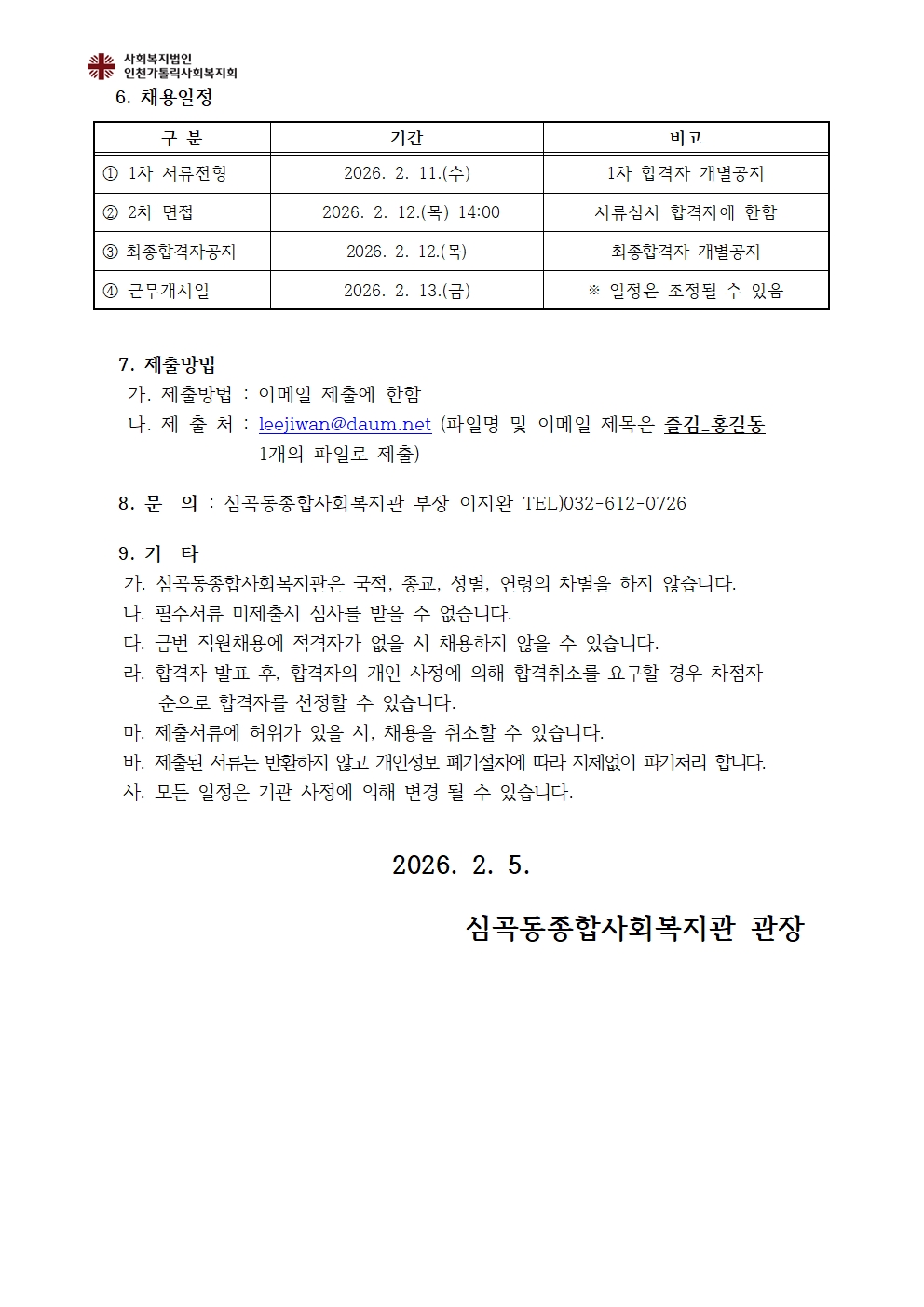 심곡동종합사회복지관 직원채용 결과공고