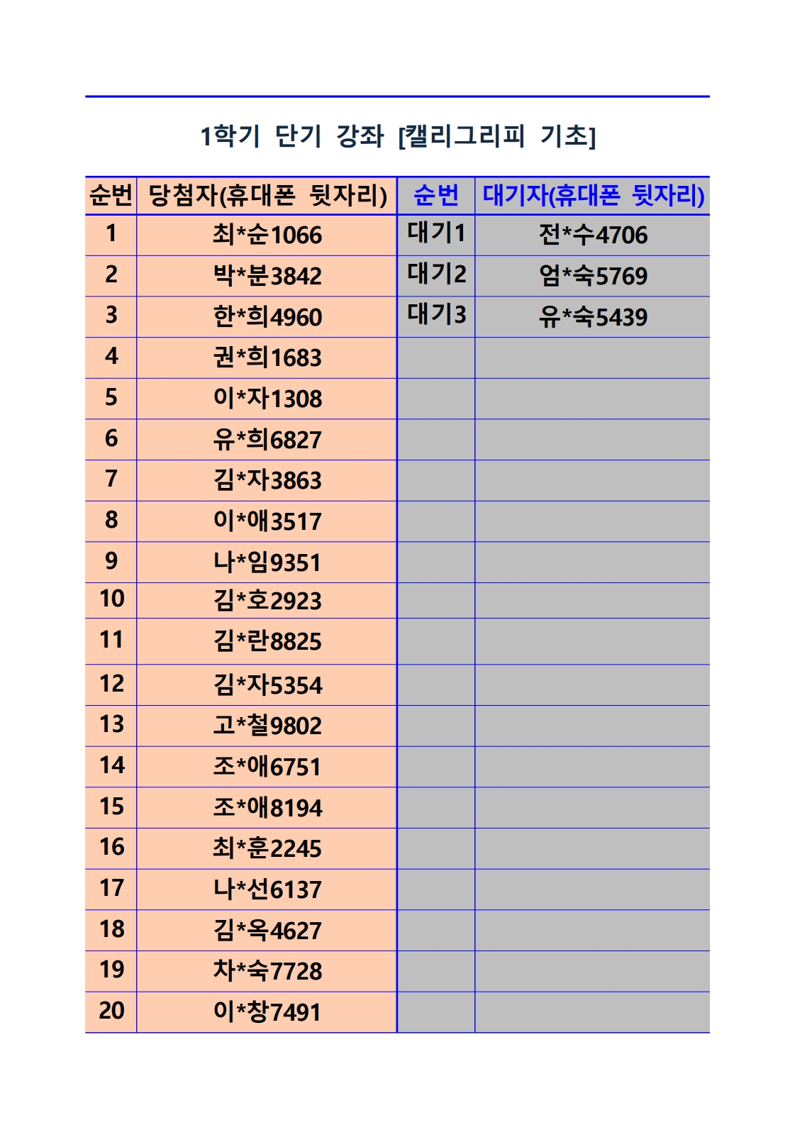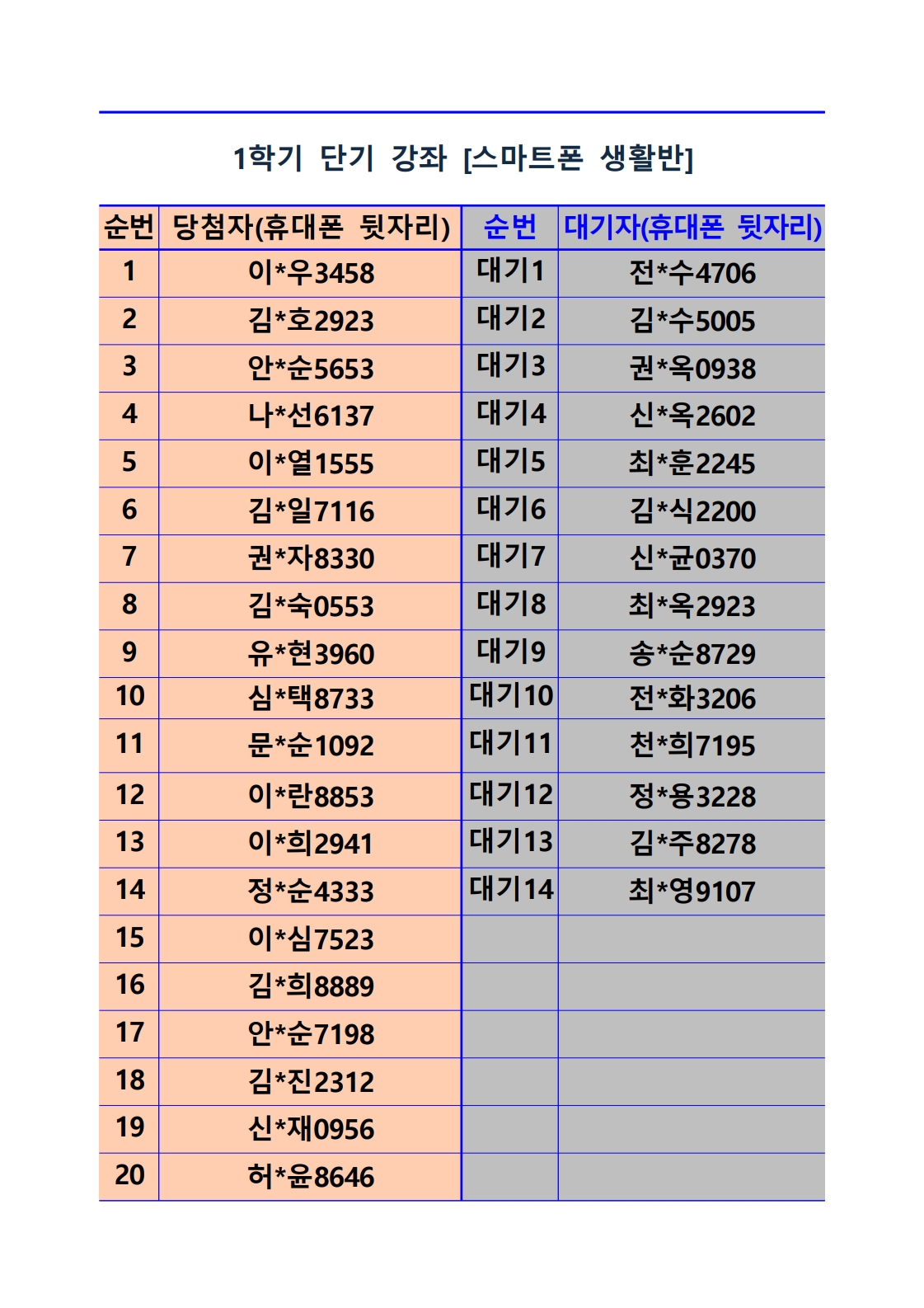 [2026년 1학기 단기 강좌 추첨 결과 및 등록(수납) 안내]