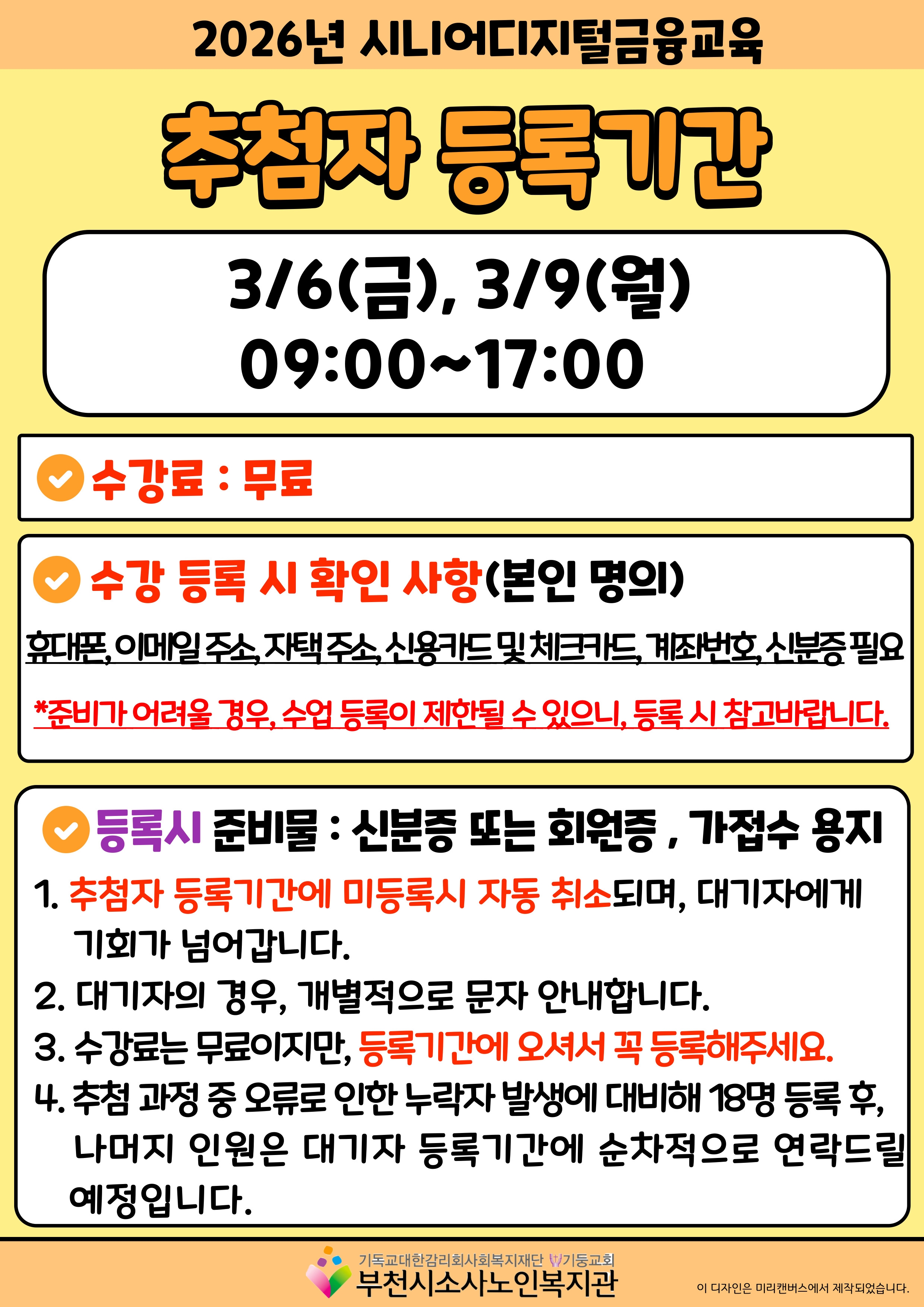 2026년 시니어디지털금융교육 추첨자 및 대기자 명단