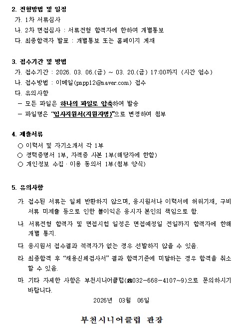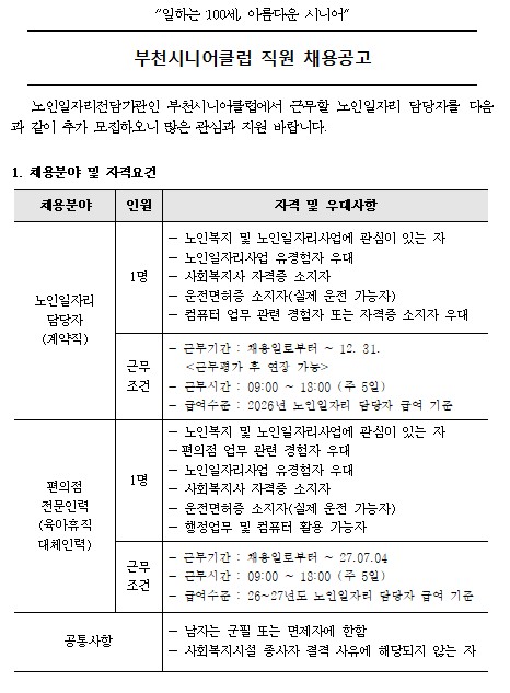 부천시니어클럽 직원 채용공고