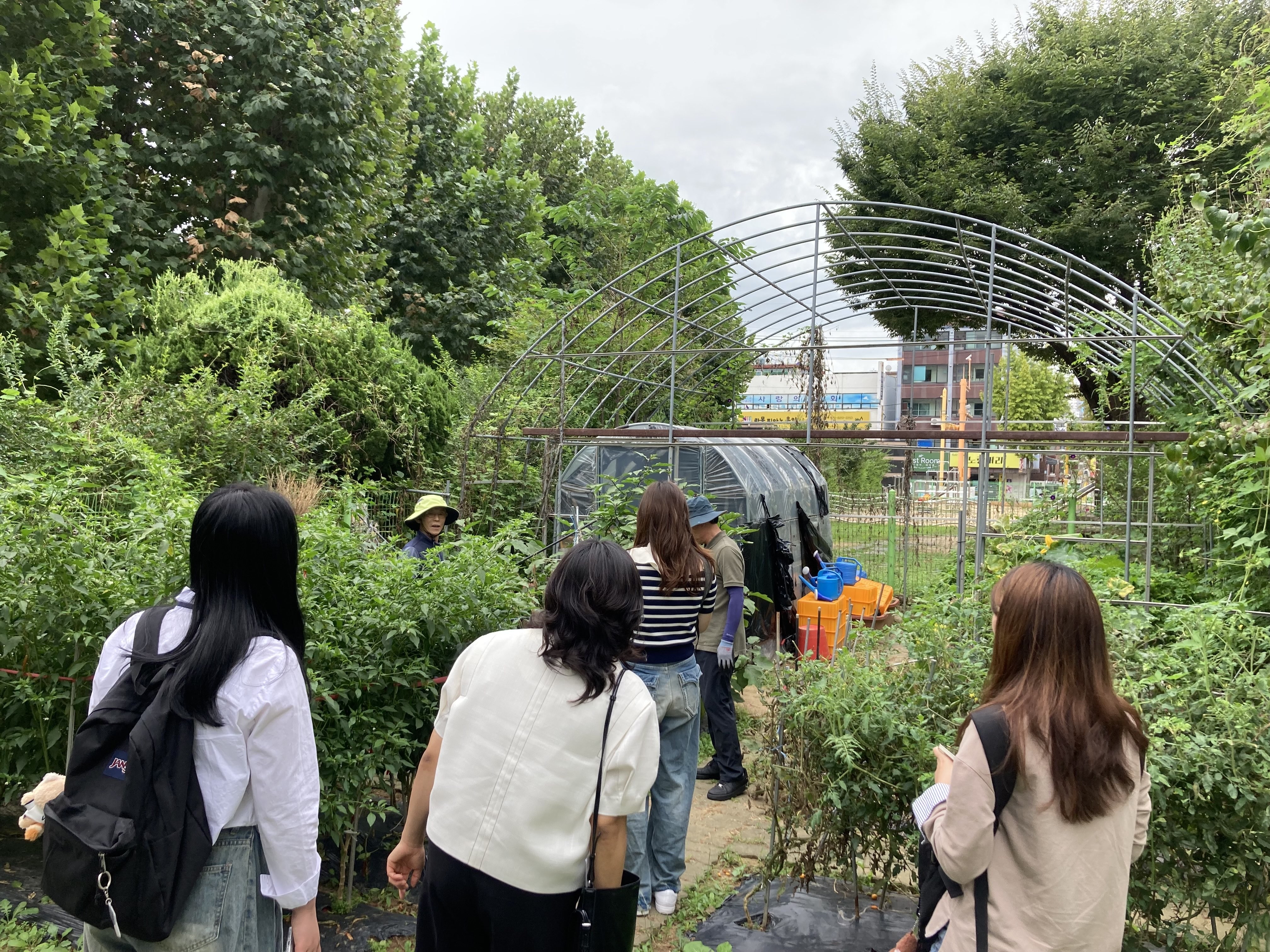 해당 현장에서 참여자분들은 송풍기를 활용해 낙엽을 정리하고, 교내 텃밭에 심어진 고추를 비롯한 다양한 채소에 물을 주며 관리하는 모습을 보여주셨습니다.