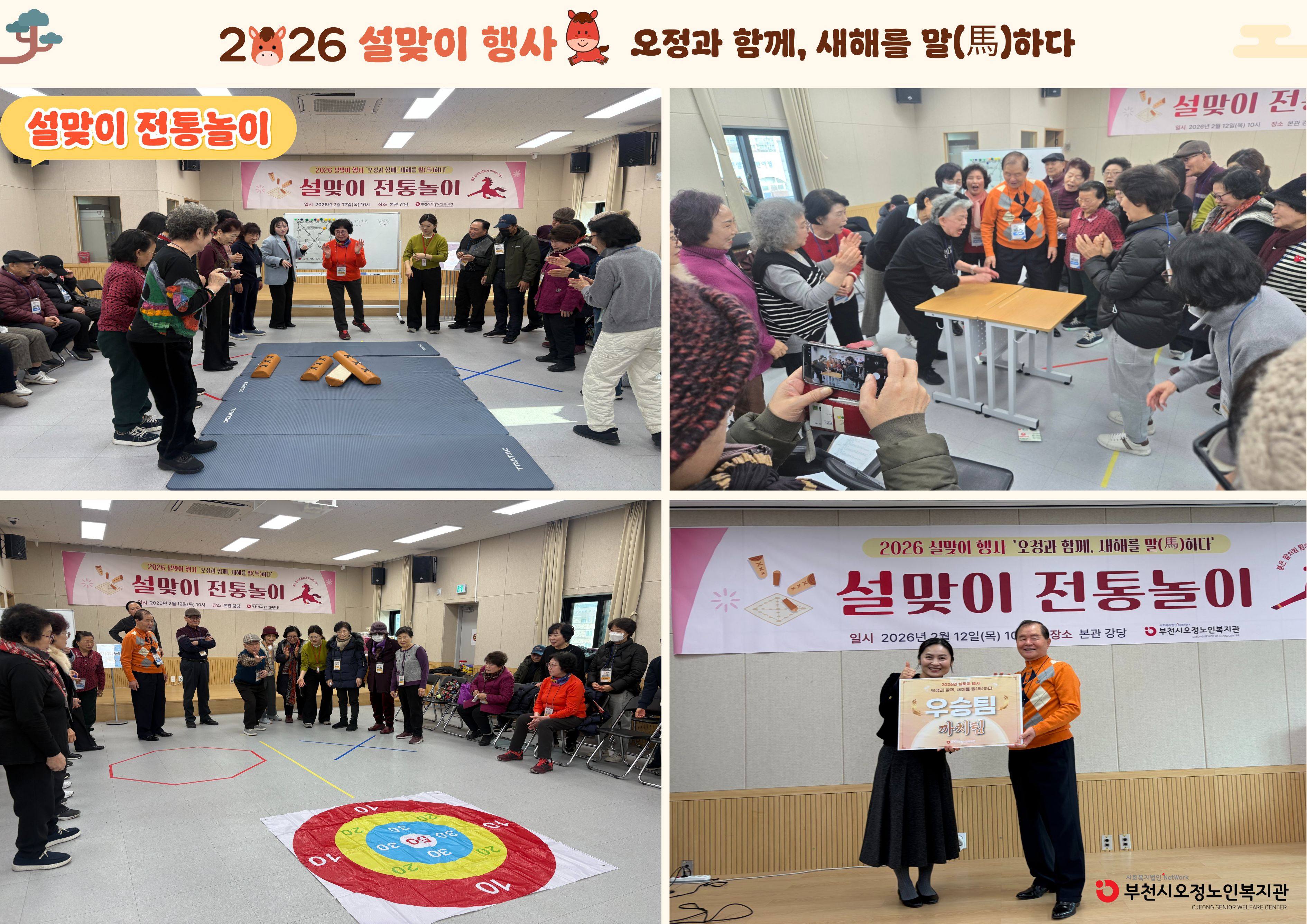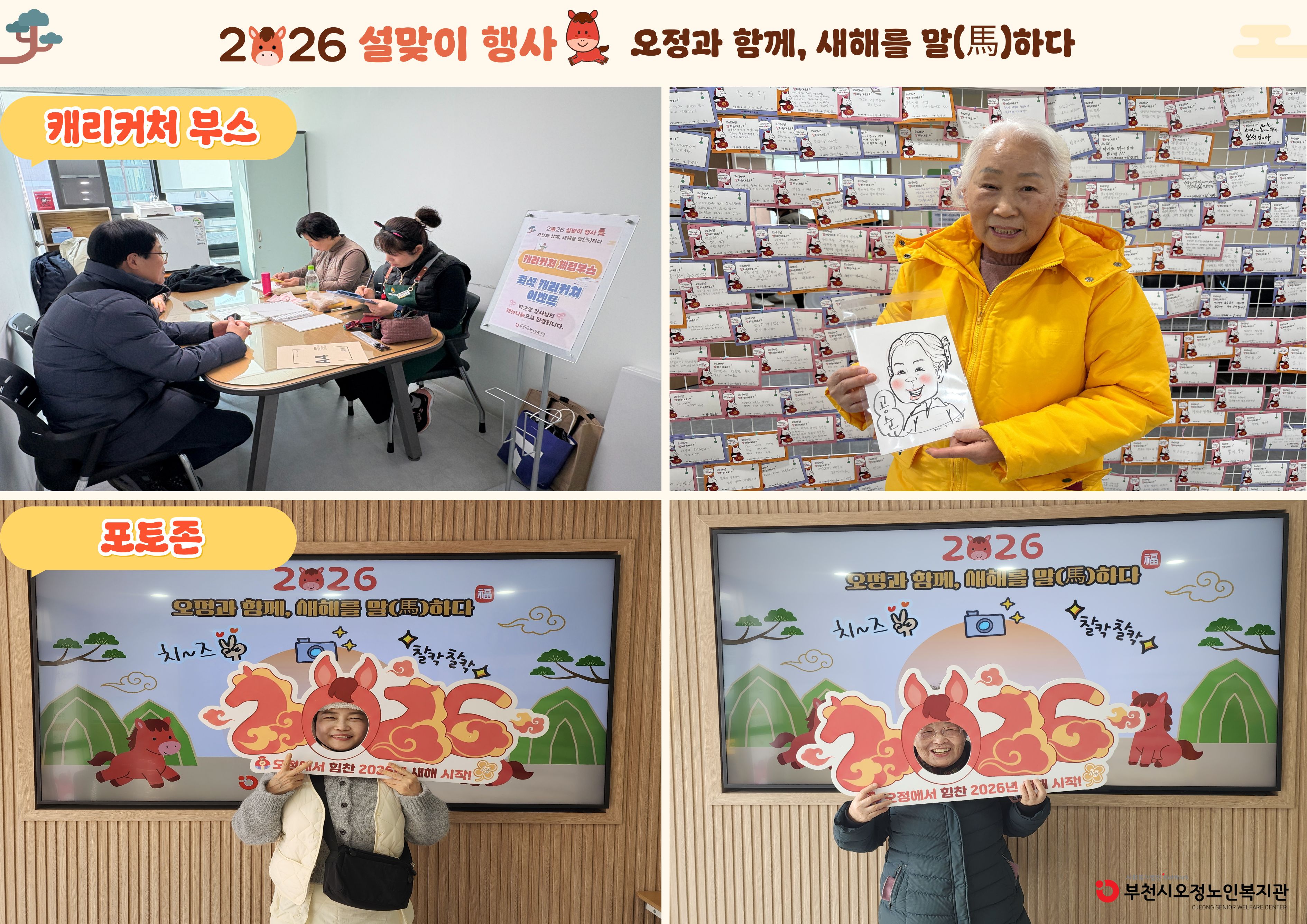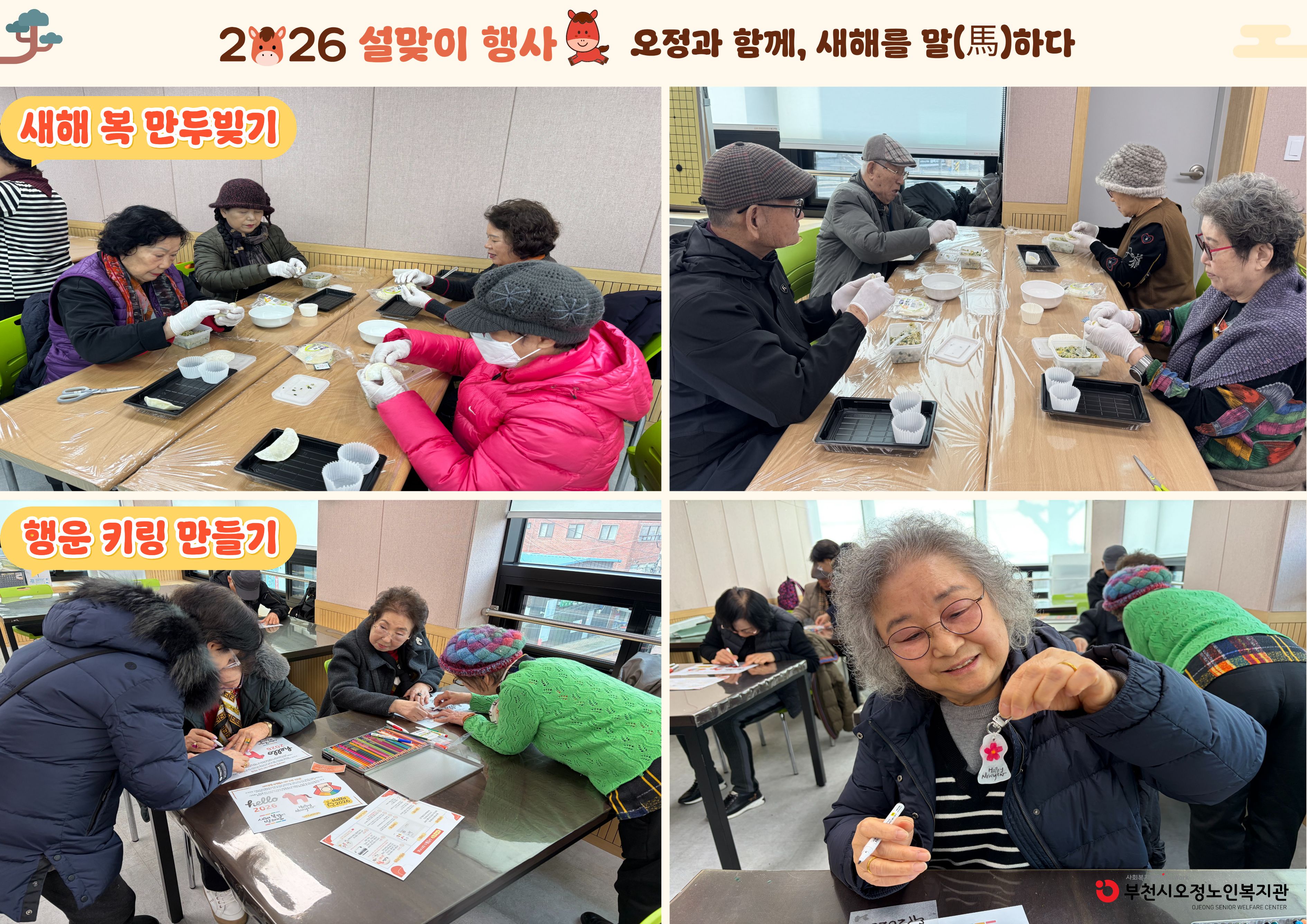 부천시오정노인복지관은 2월 12일(목), 설을 맞이하여 「오정과 함께, 새해를 말(馬)하다」 설맞이 행사를 진행하였습니다.