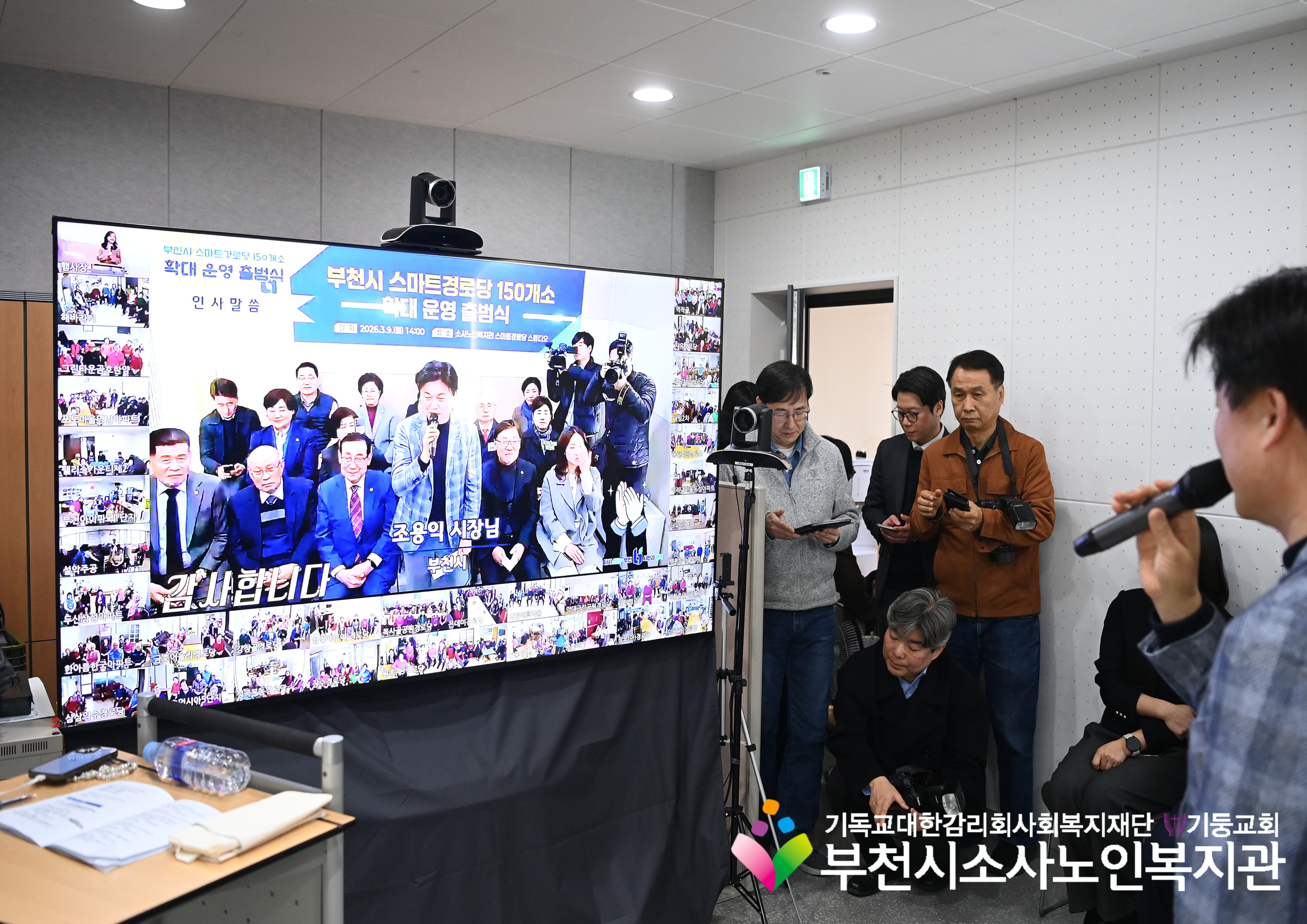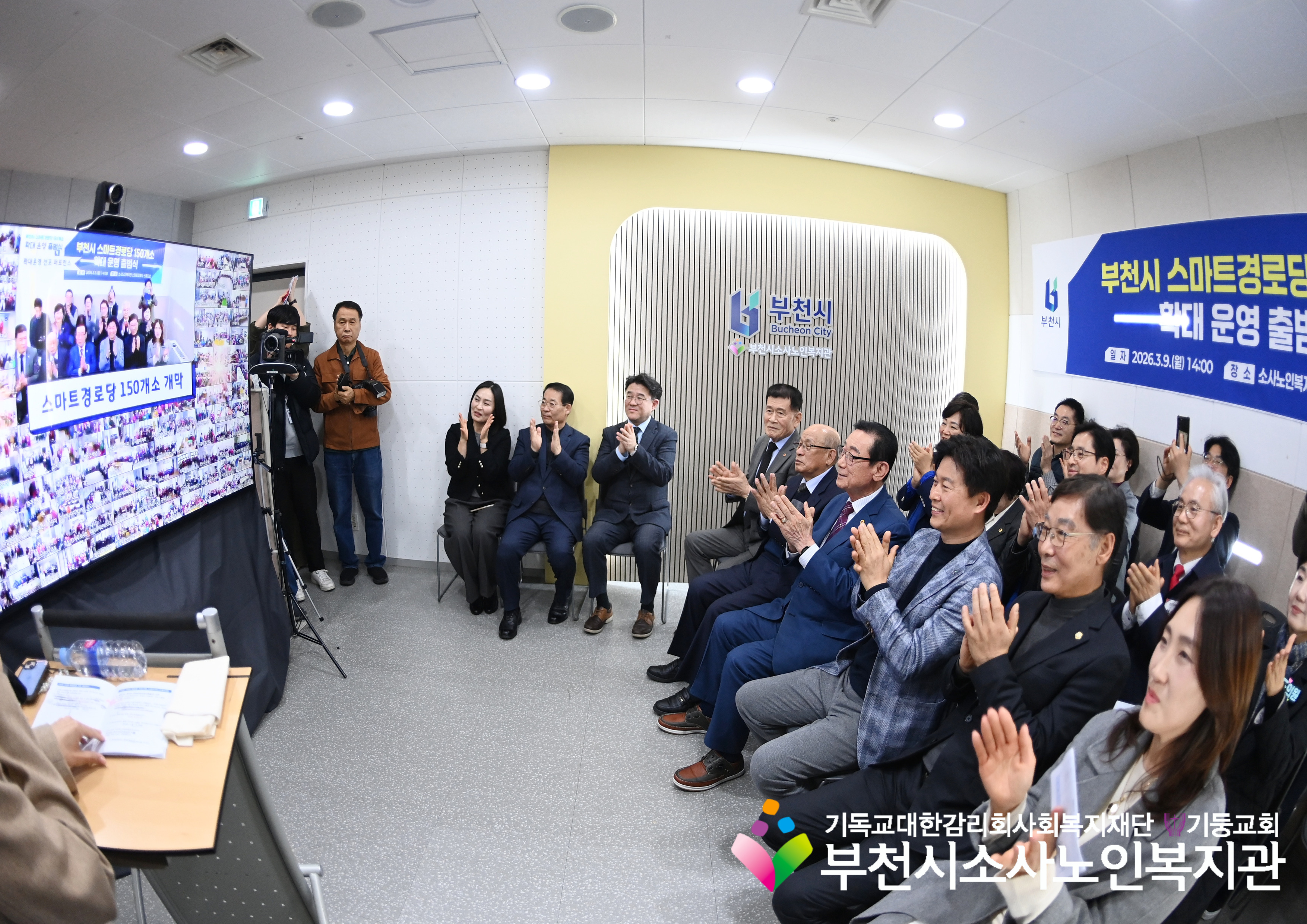 부천시소사노인복지관에서는 2026년 3월 9일 월요일 부천시 스마트경로당 150개소 확대 운영을 알리는 출범식을 진행하였습니다.