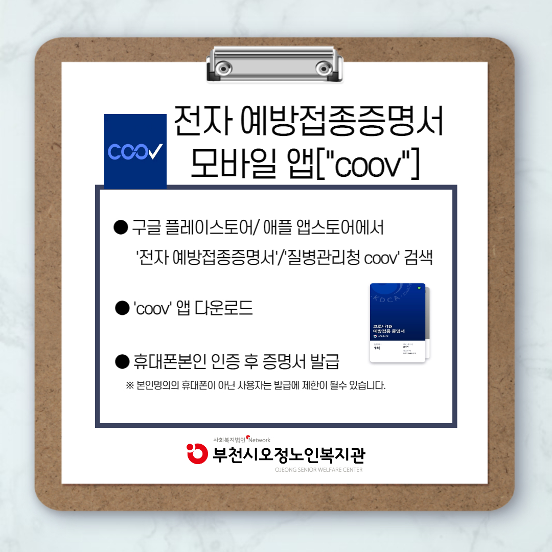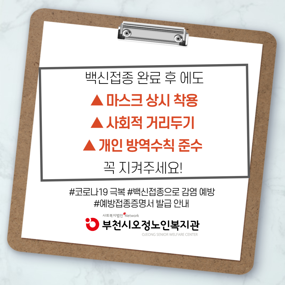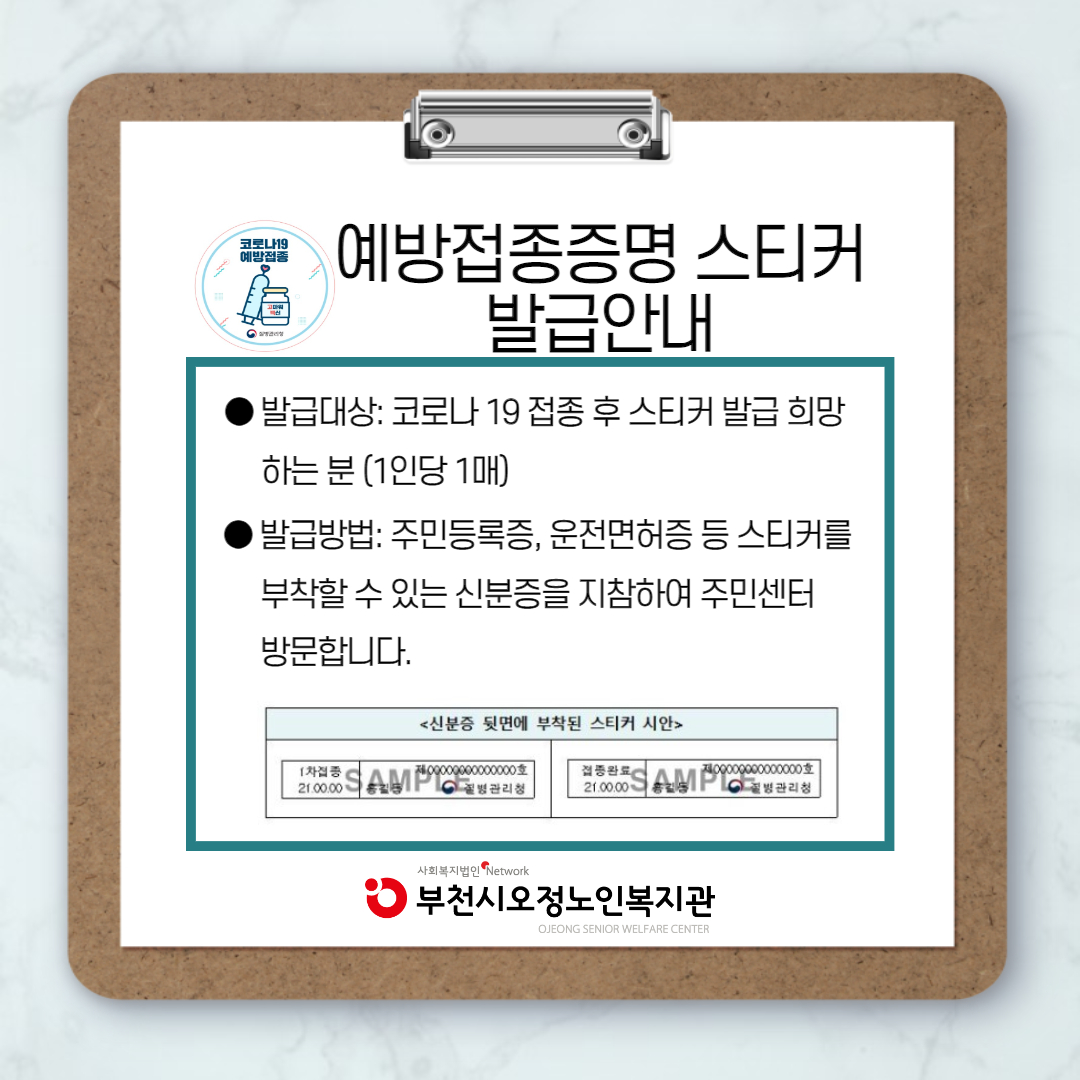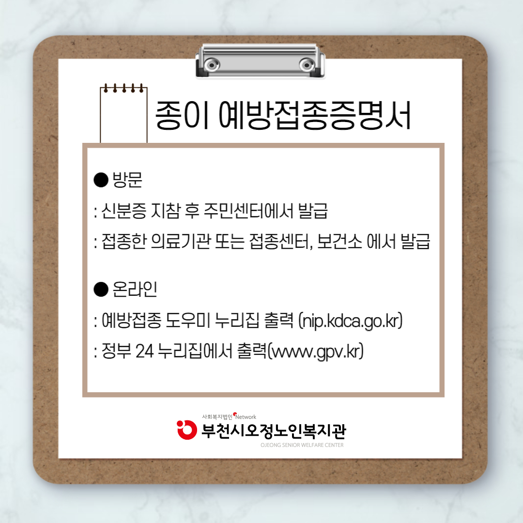 [부천시오정노인복지관] 예방접종증명서 발급안내