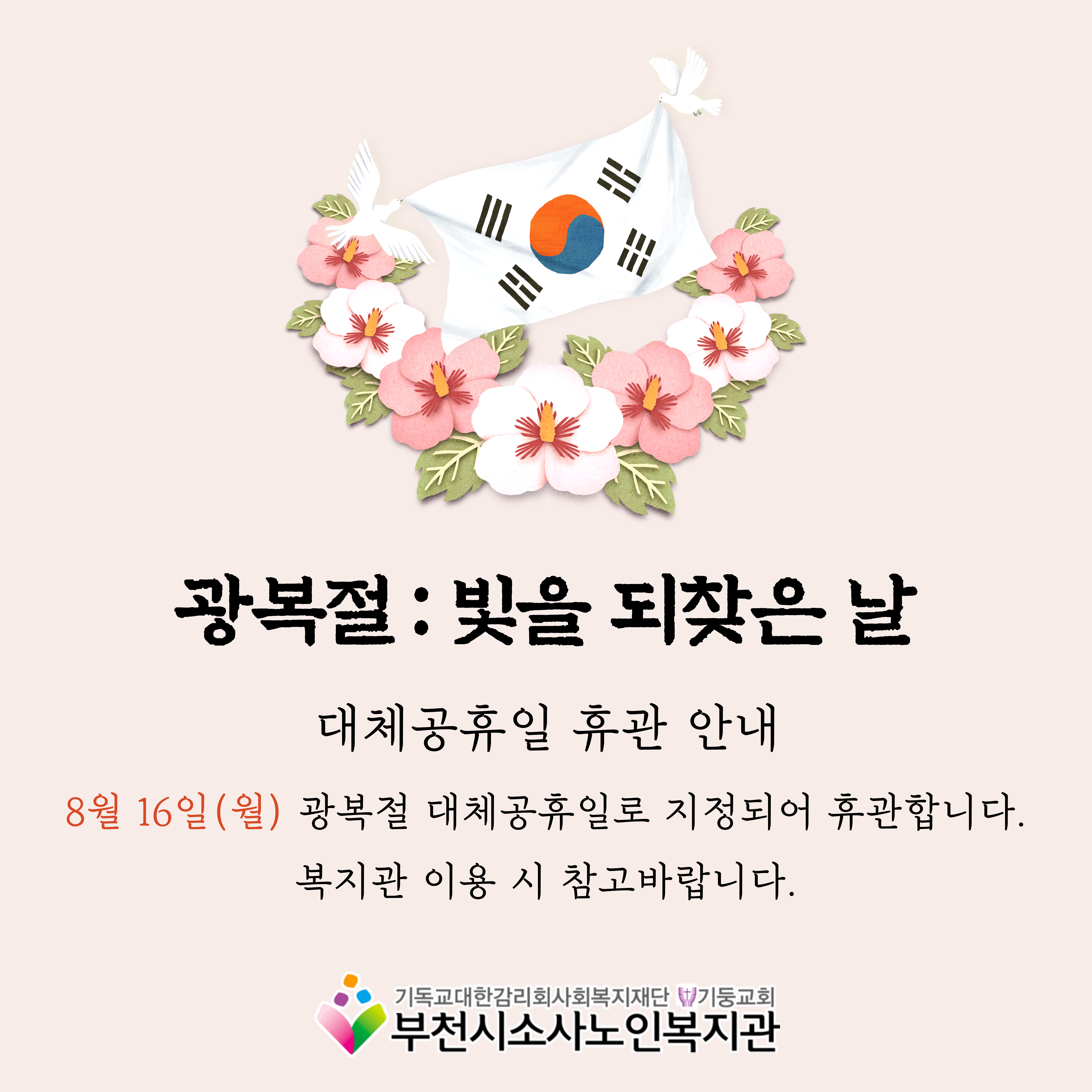 [부천시소사노인복지관] 광복절 대체공휴일 지정에 따른 휴관 안내