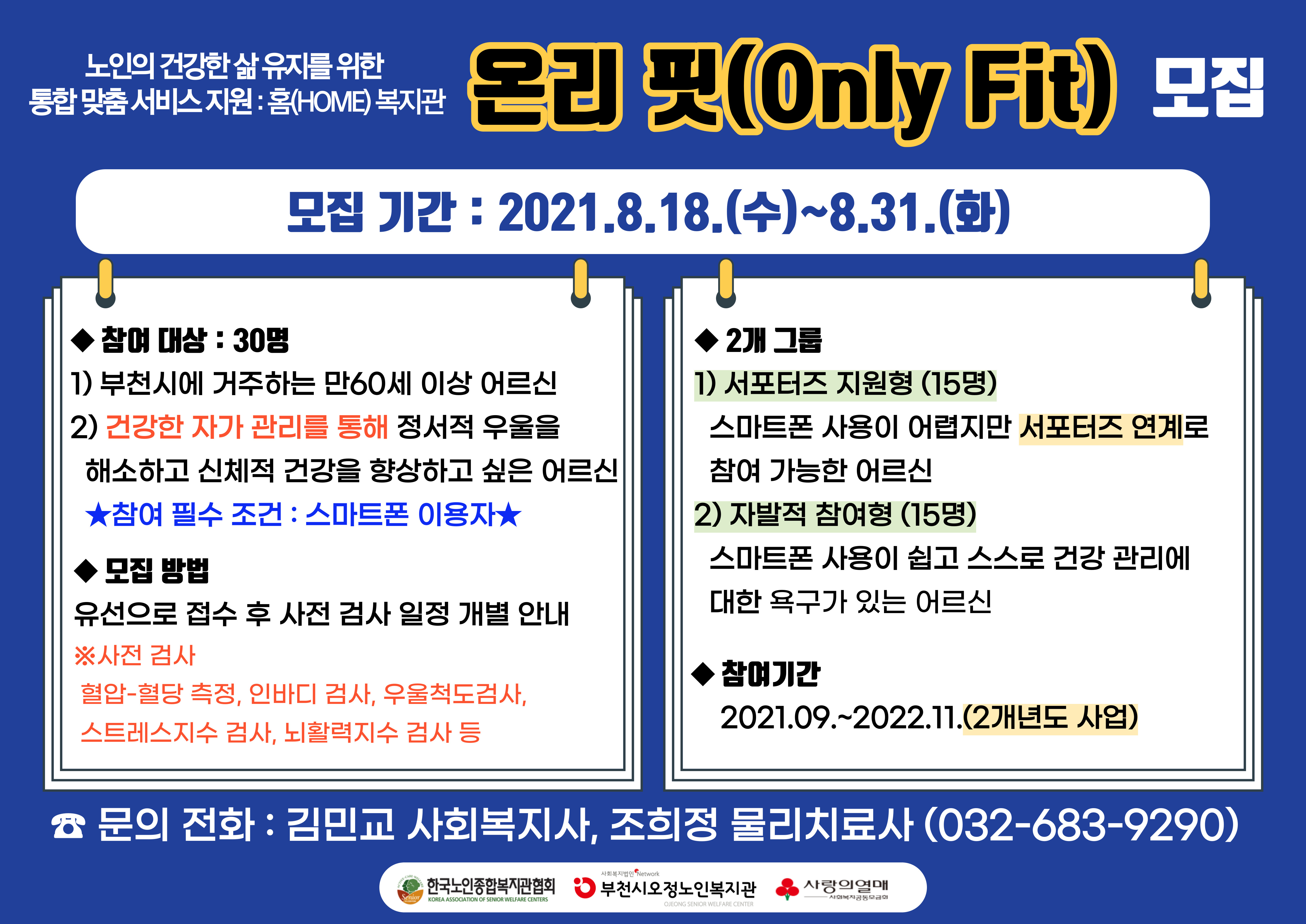 노인의 건강한 삶 유지를 위한 통합 맞춤 서비스 지원 : 홈(HOME)복지관 온리 핏(Only Fit) 모집