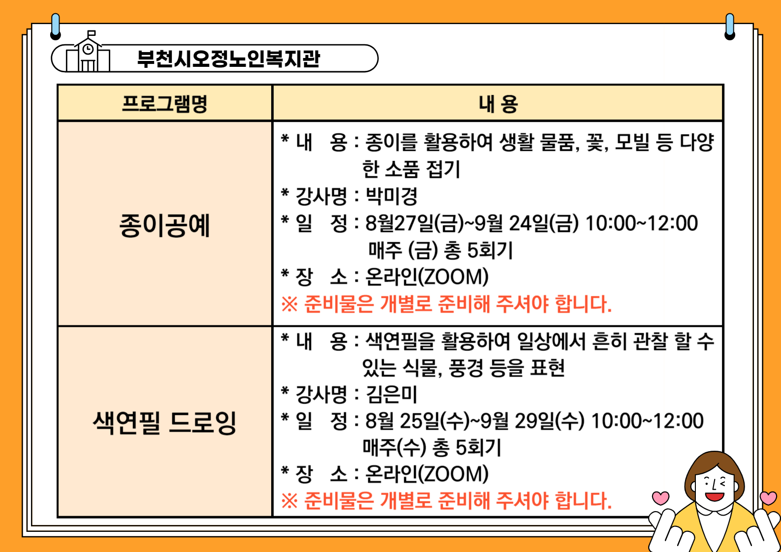 ※준비물은 개별 준비해 주셔야 합니다. 준비물은 다음주 월요일 안내 예정입니다.