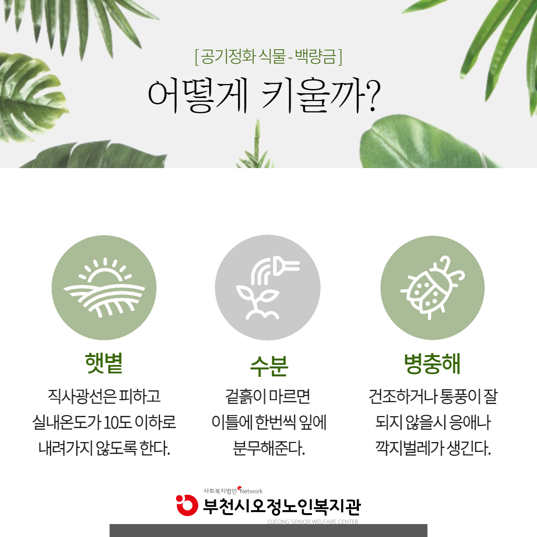 [부천시오정노인복지관] 미세먼지 잡는 반려식물 안내