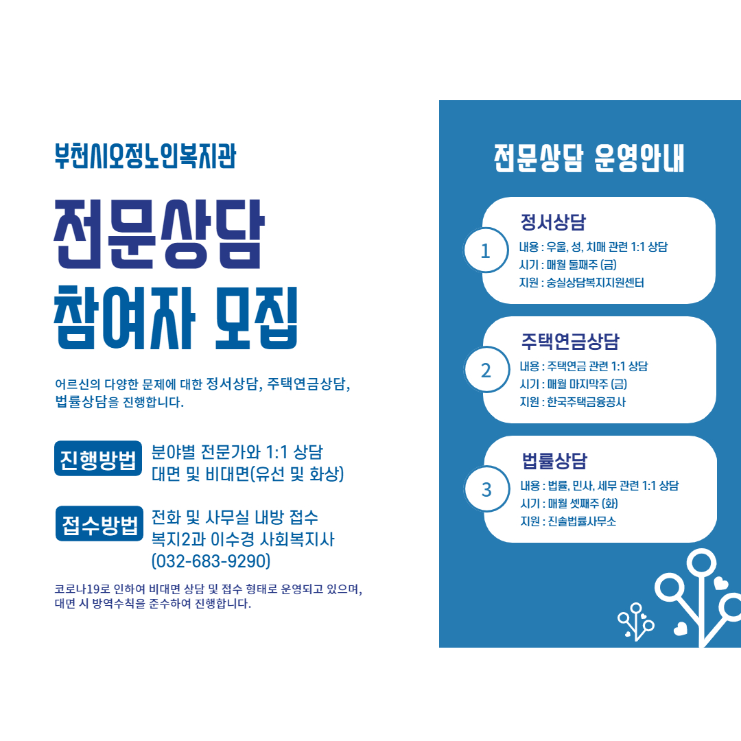 [부천시오정노인복지관] 전문상담 안내 및 참여자모집