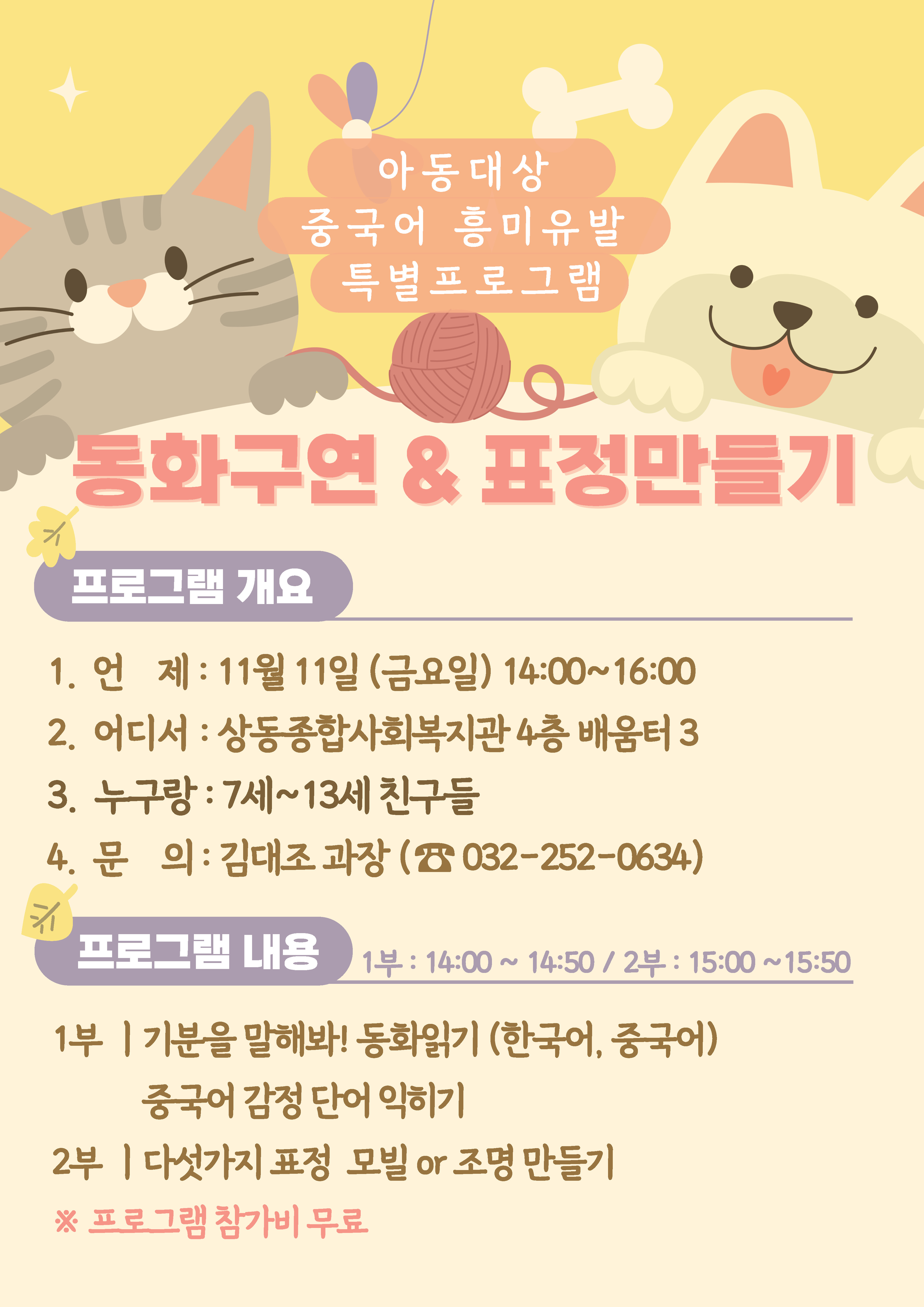 [상동공지] 아동대상 중국어 흥미 유발 특별프로그램 인원 모집 안내
