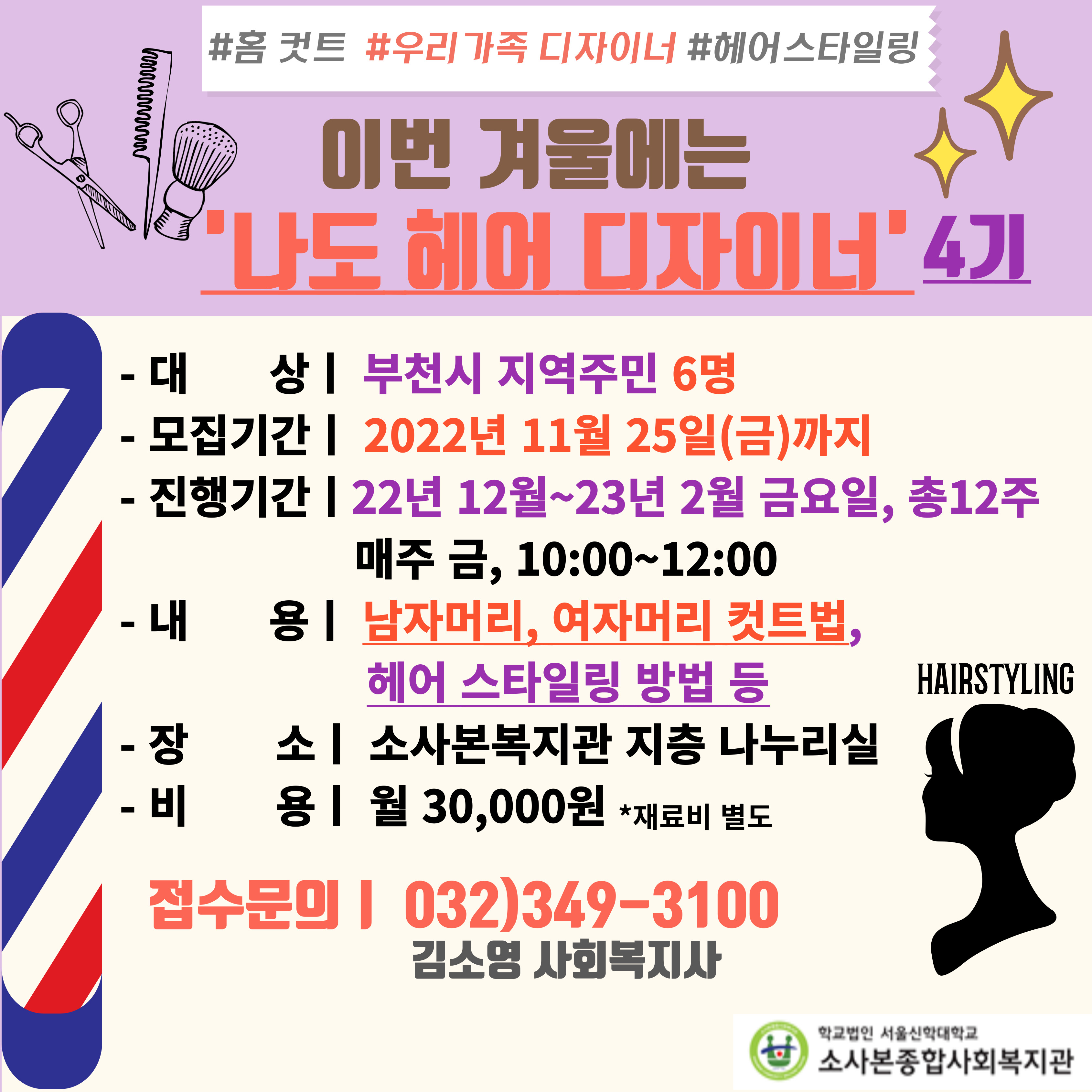 2022년 나도 헤어 디자이너 미용교실 4기 참여자를 모집합니다.