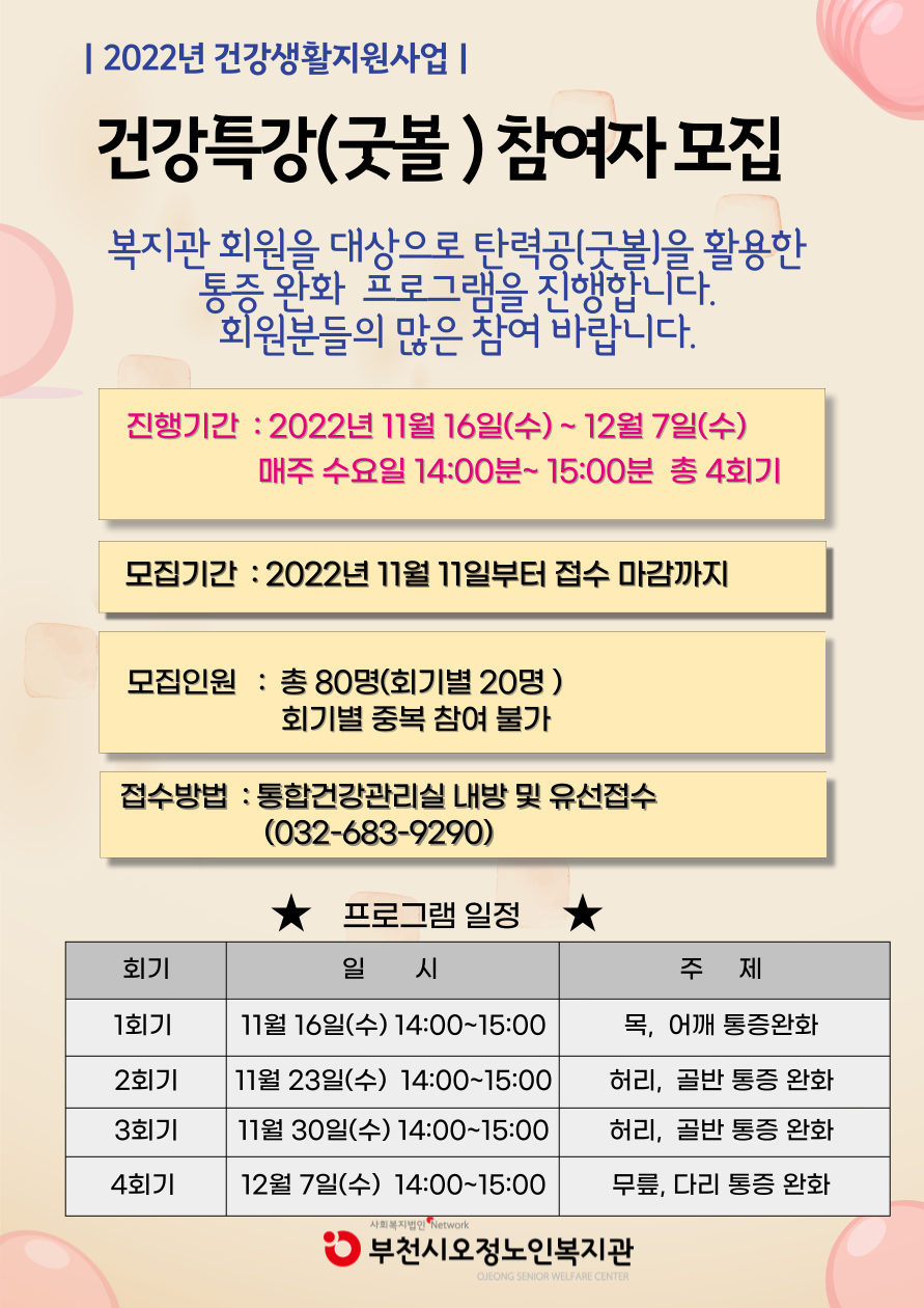 2022년 건강생활지원사업 건강특강(굿볼) 참여자 모집