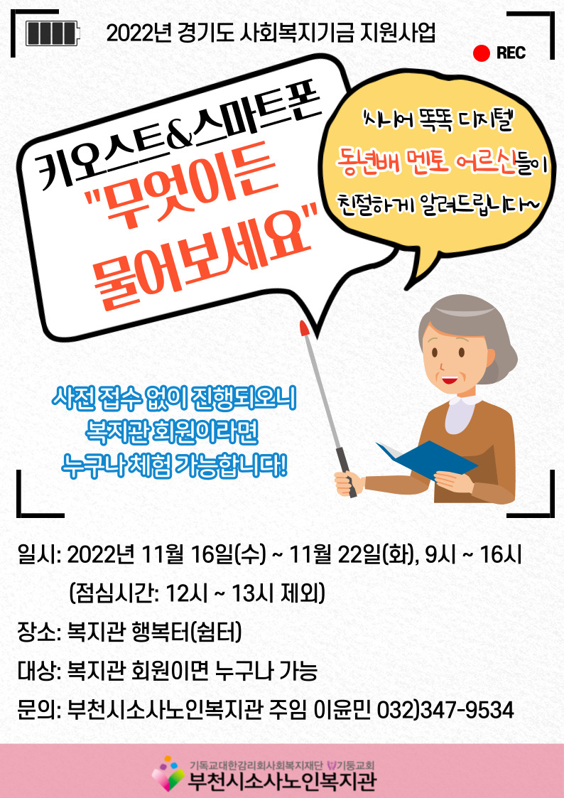 2022년 '시니어 똑똑 디지털 멘토' 키오스크&스마트폰 "무엇이든 물어보세요"