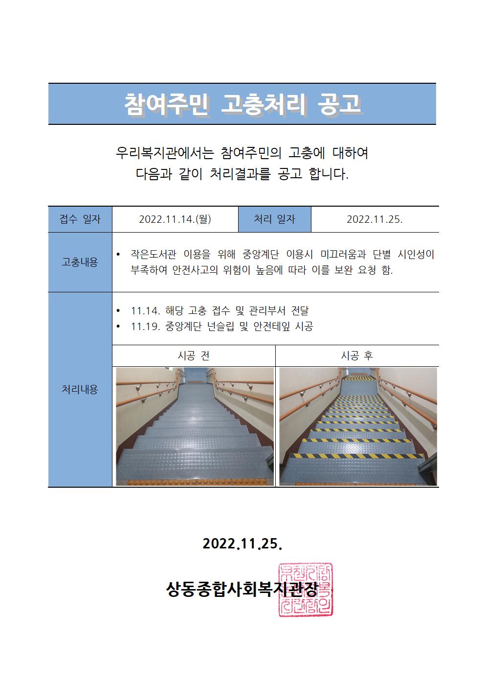 상동종합사회복지관 참여주민 고충처리 공고
