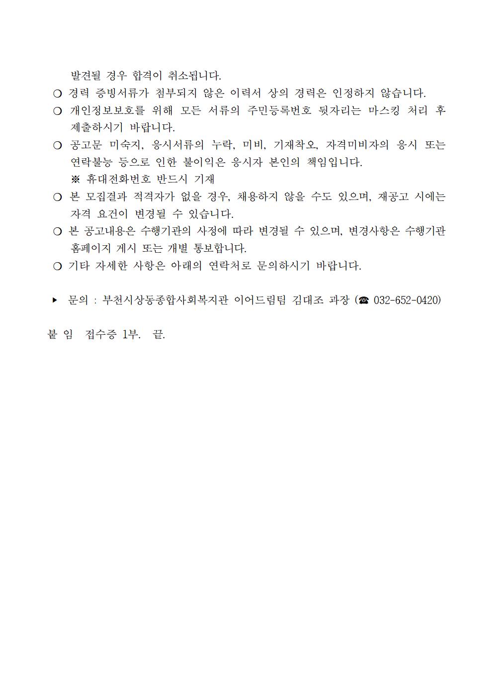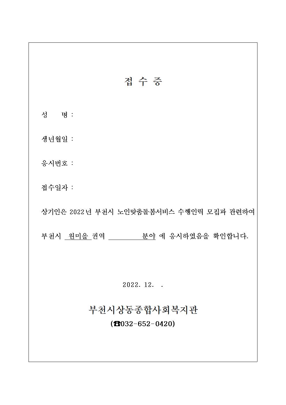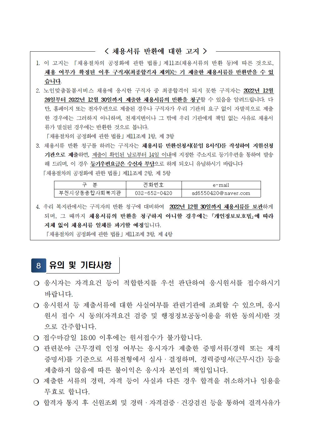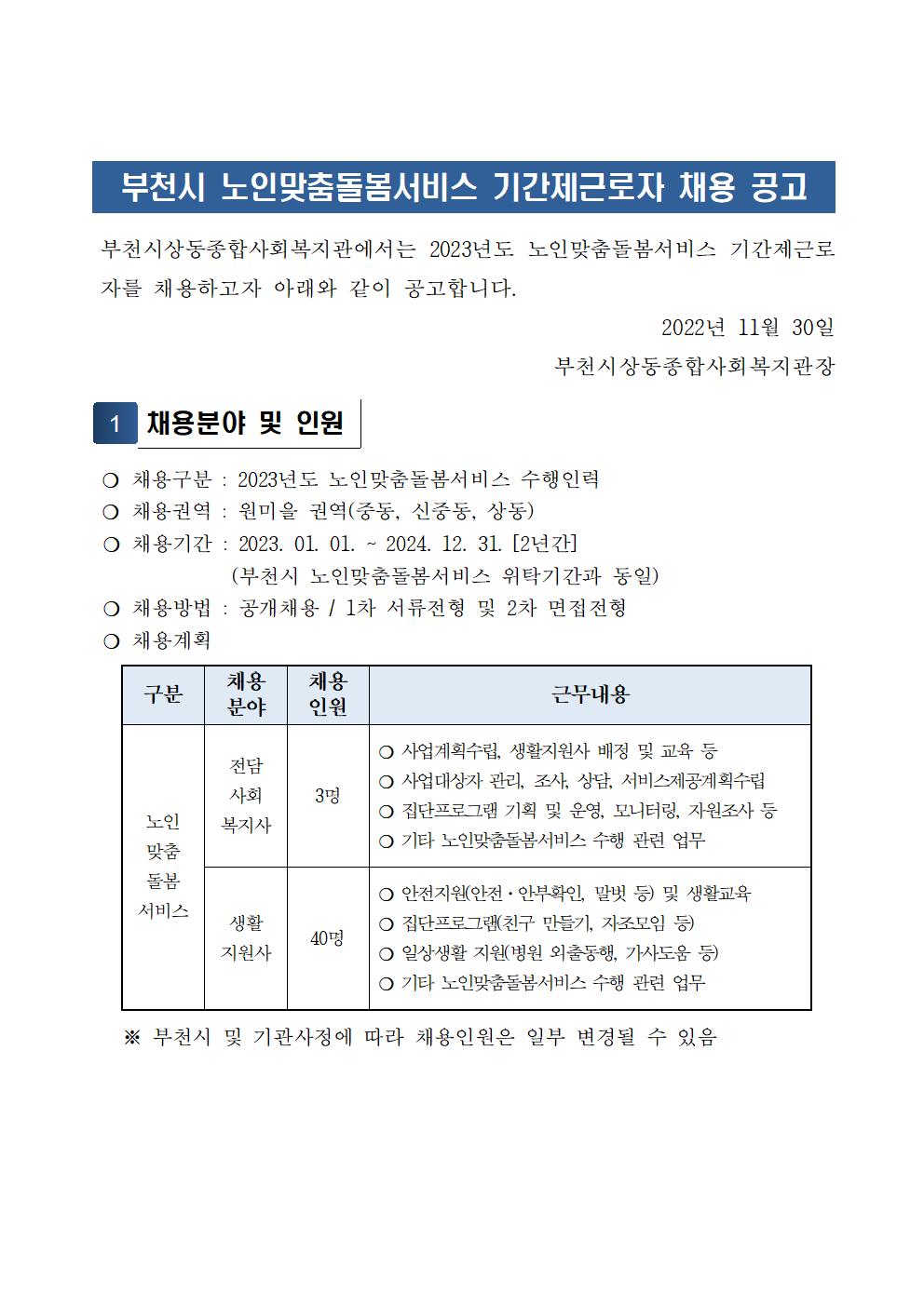 2023년도 상동종합사회복지관 노인맞춤돌봄서비스 기간제근로자 채용 공고