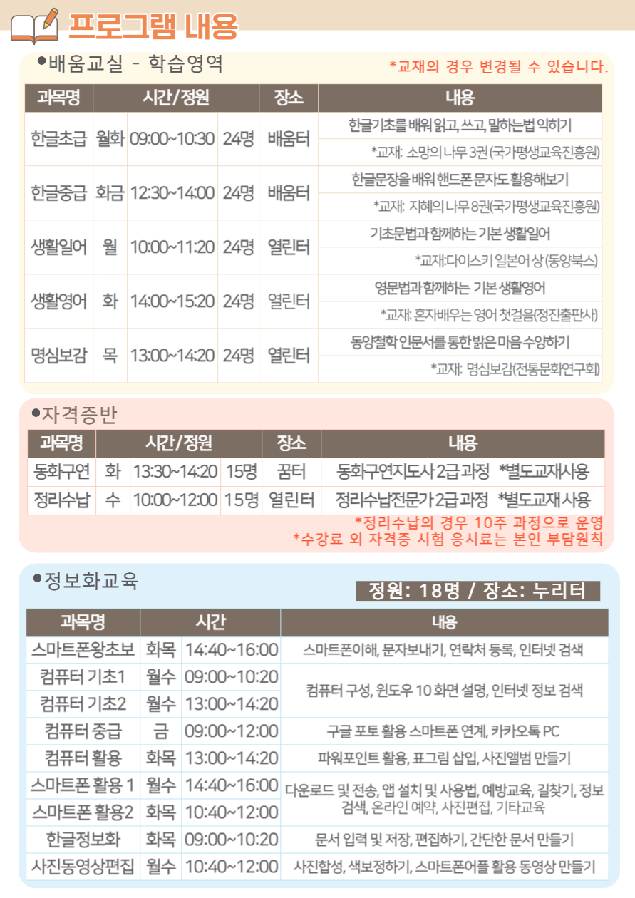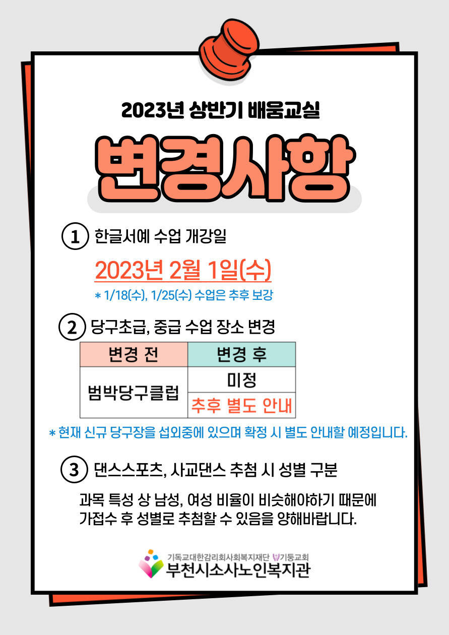 부천시소사노인복지관 2023년 상반기 배움교실 & 1분기 정보화교육 접수 및 등록 안내