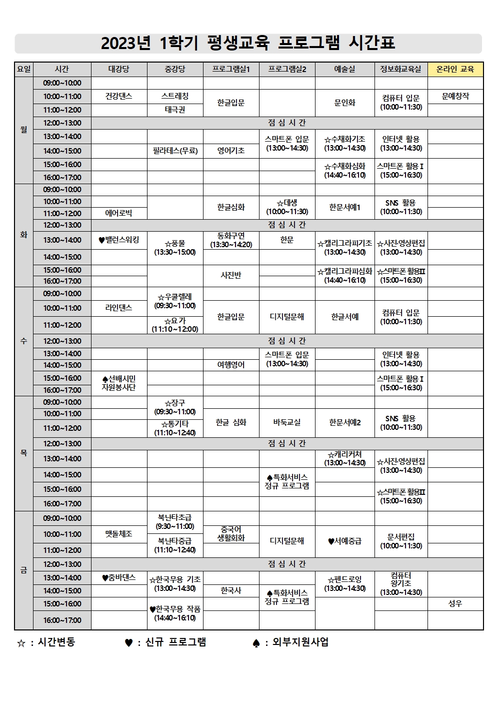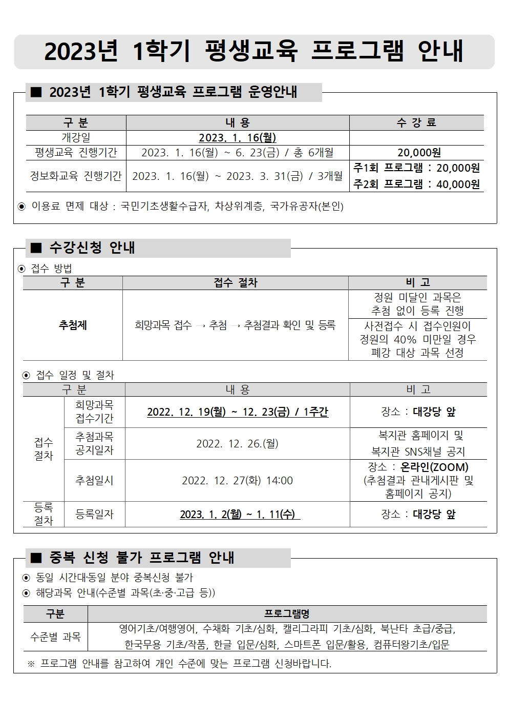 2023년 1학기 평생교육&1분기 정보화교육 사전접수 안내입니다.