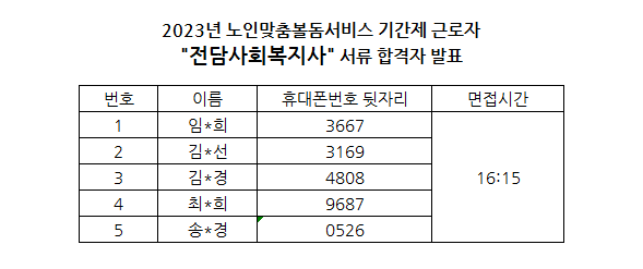 2023년 노인맞춤돌봄서비스 기간제 근로자 채용에 관심을 가지고 지원해 주셔서 감사합니다.