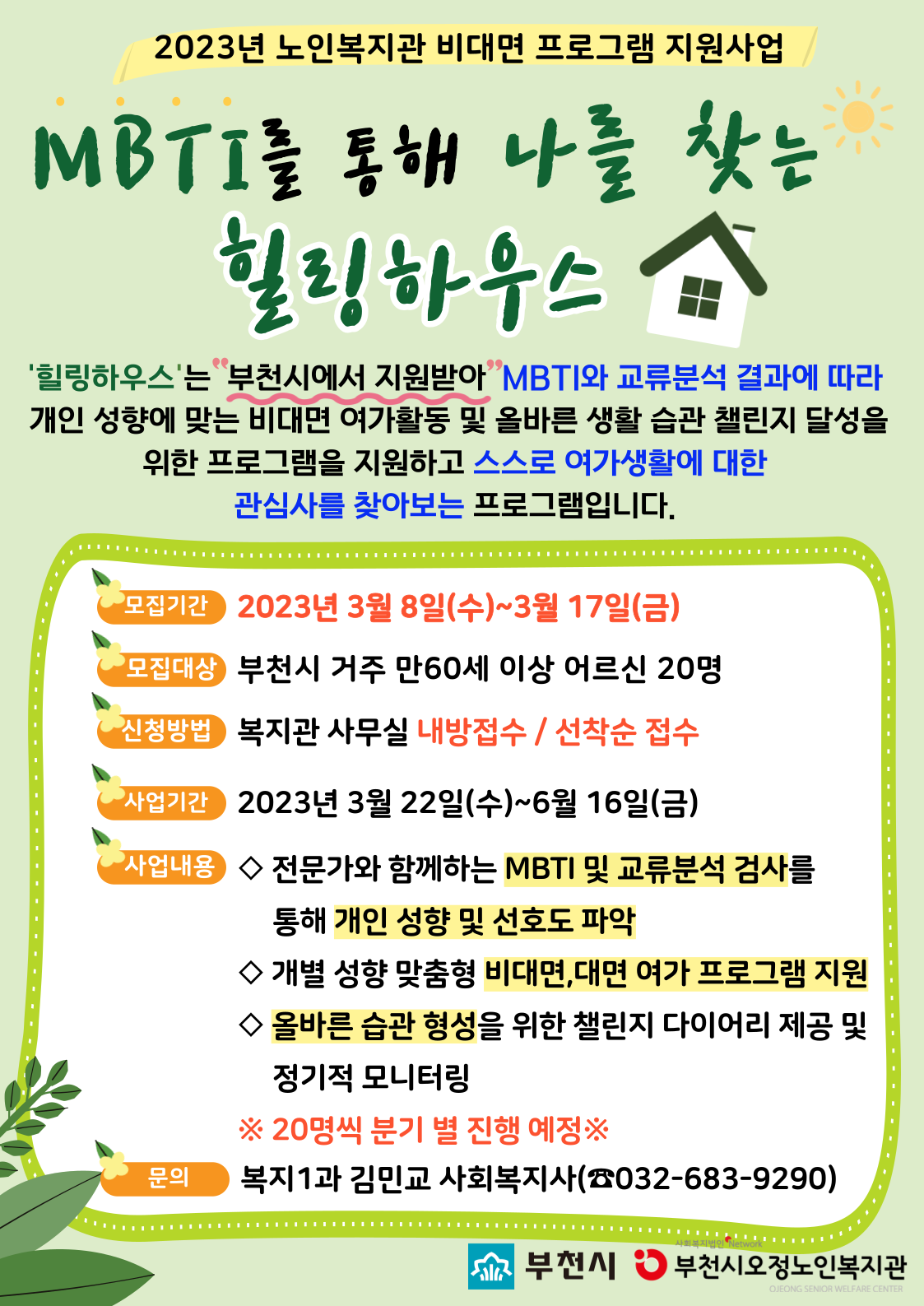 MBTI를 통해 나를 찾는 ‘힐링하우스’ 프로그램 참여자를 모집합니다!