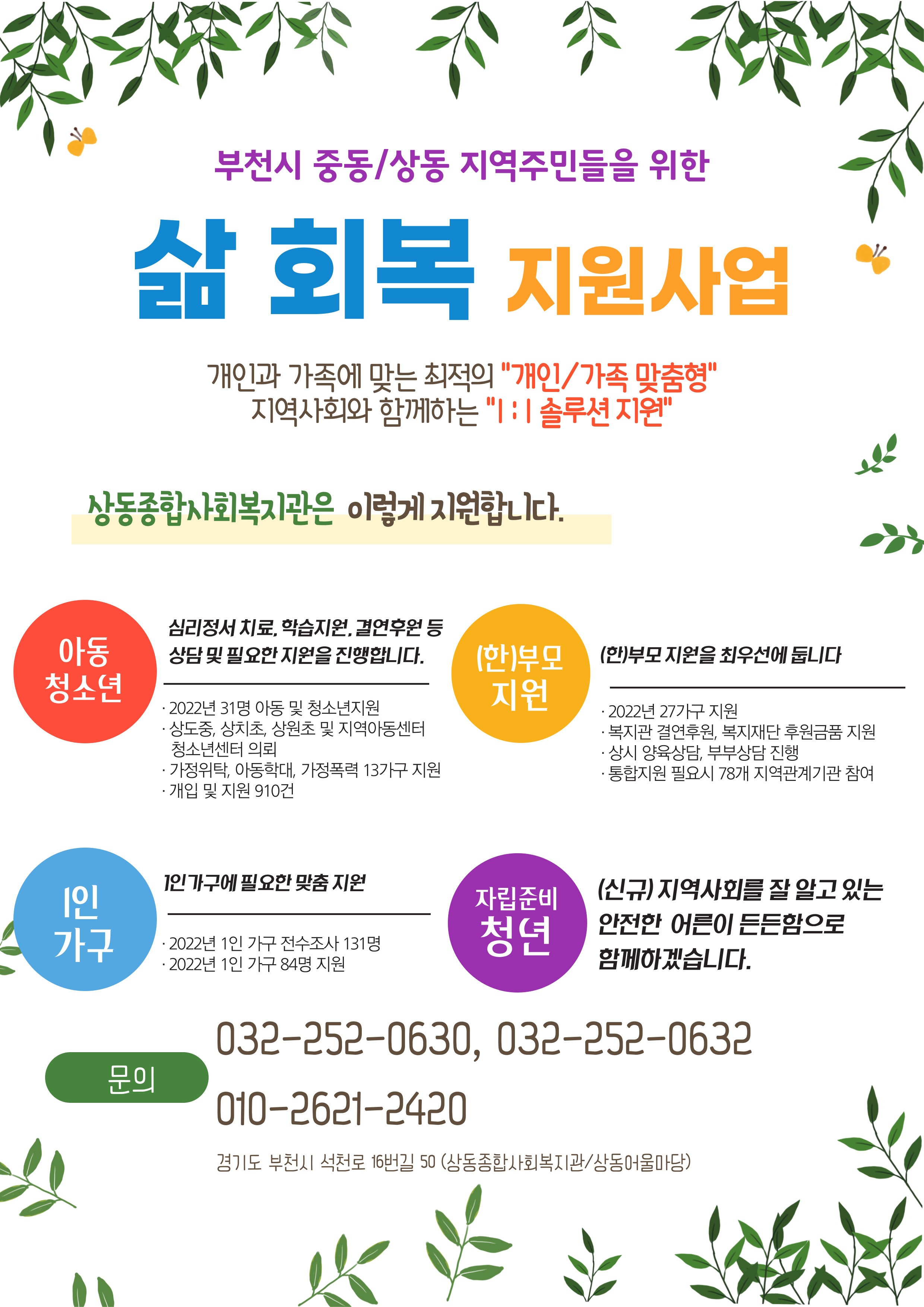 부천시 중동/상동 지역주민들을 위한 삶회복 지원사업을 안내드립니다.