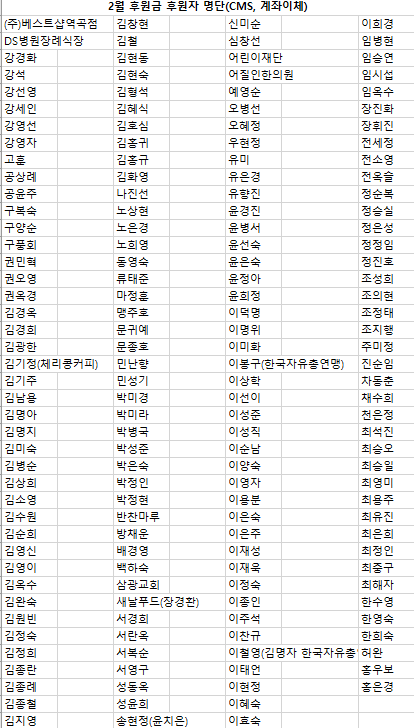 [2월 후원금(CMS, 통장입금) 후원자 명단] 총 166명
