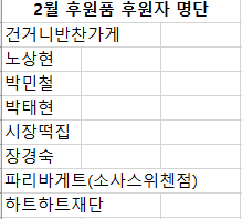 2023년 2월 후원금품 후원자 명단 입니다. 저희 복지관과 함께 해주셔서 감사합니다.