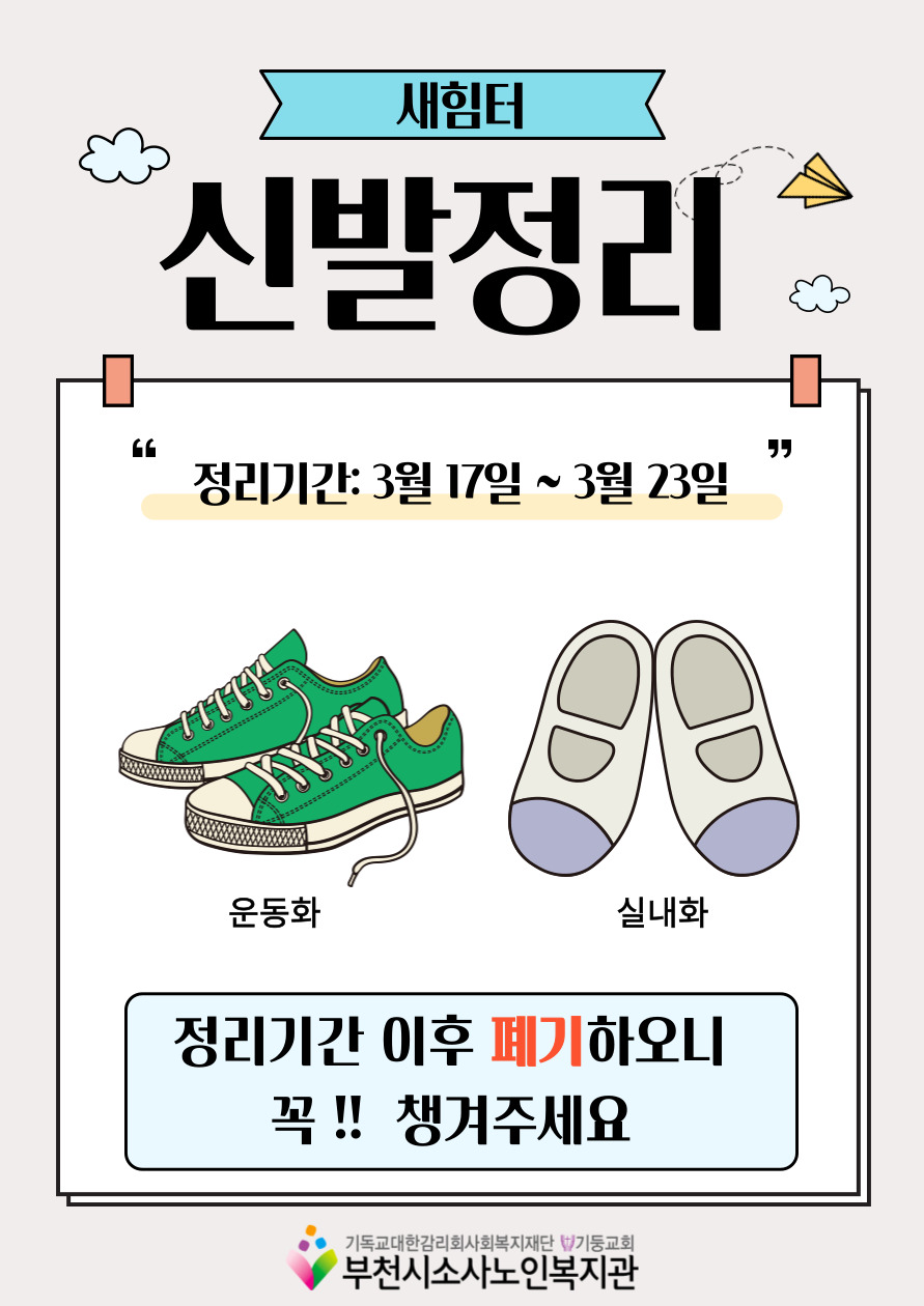 탁구수업 개강에 앞서 새힘터 신발장에 있는 신발을 정리하려고 합니다.