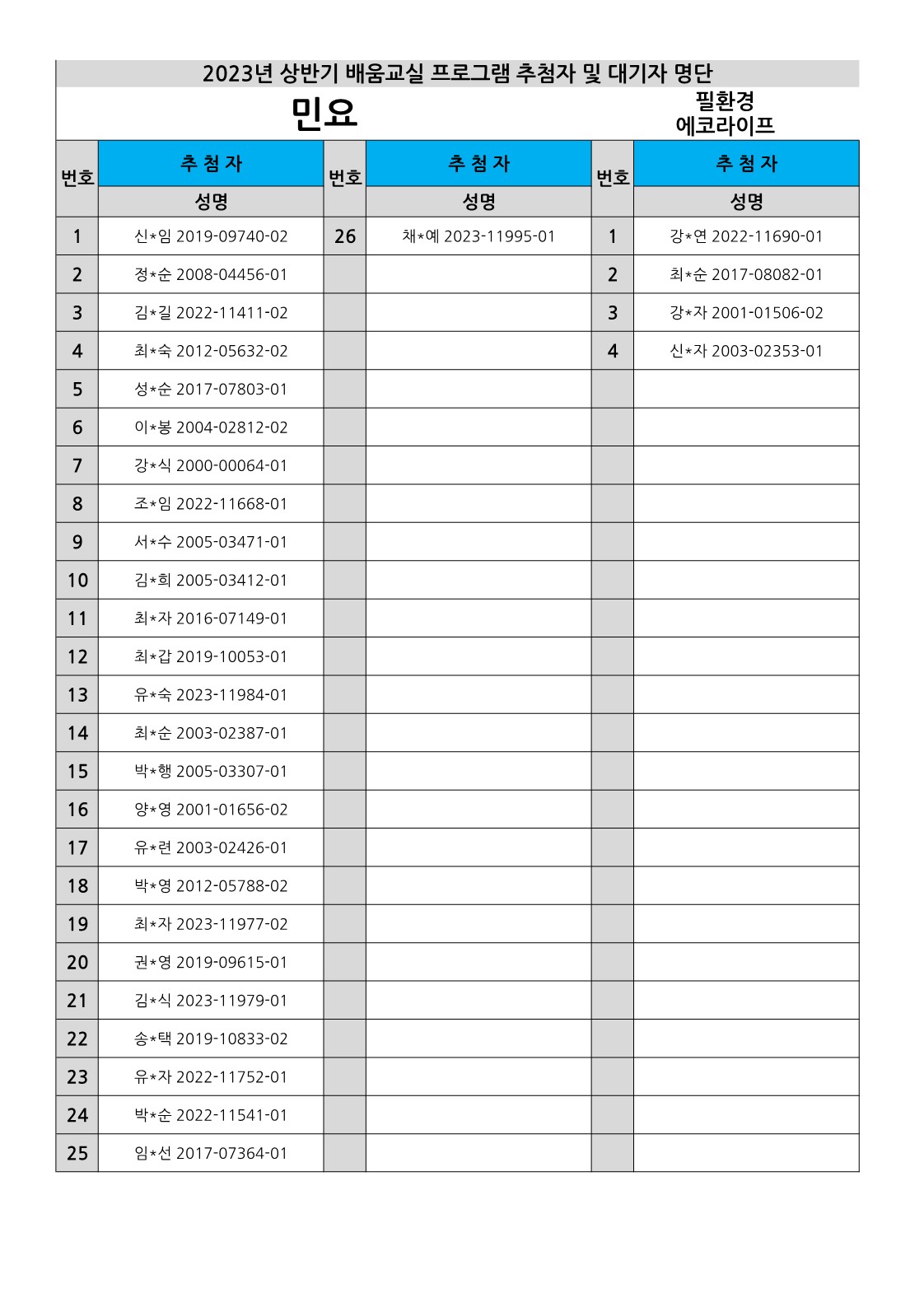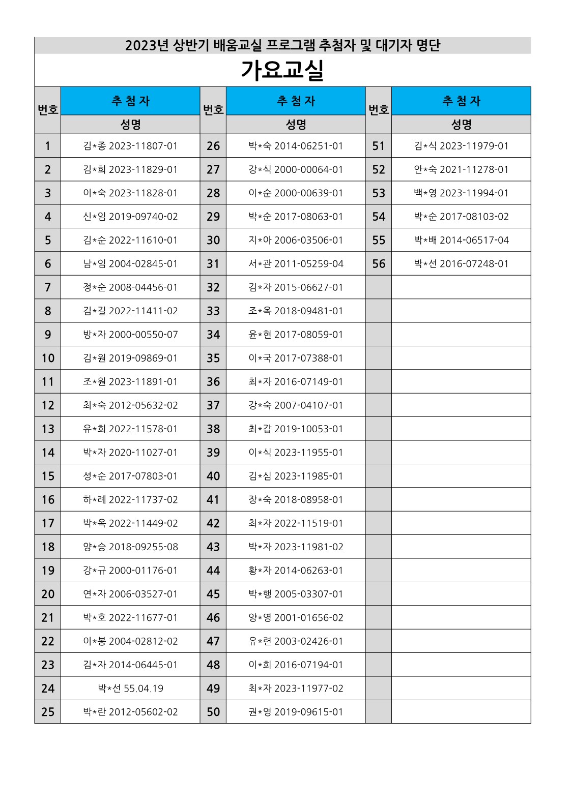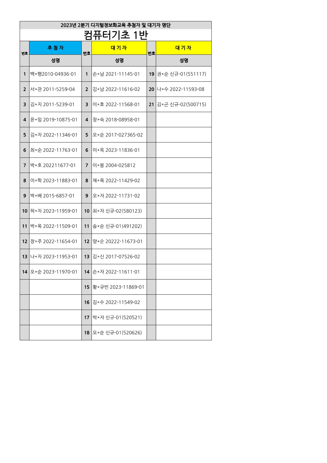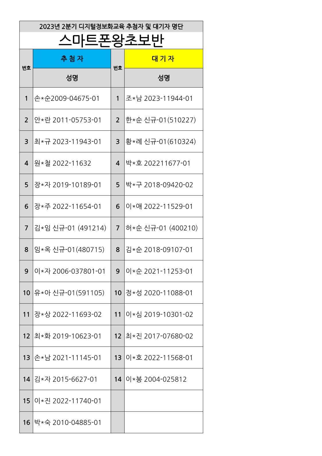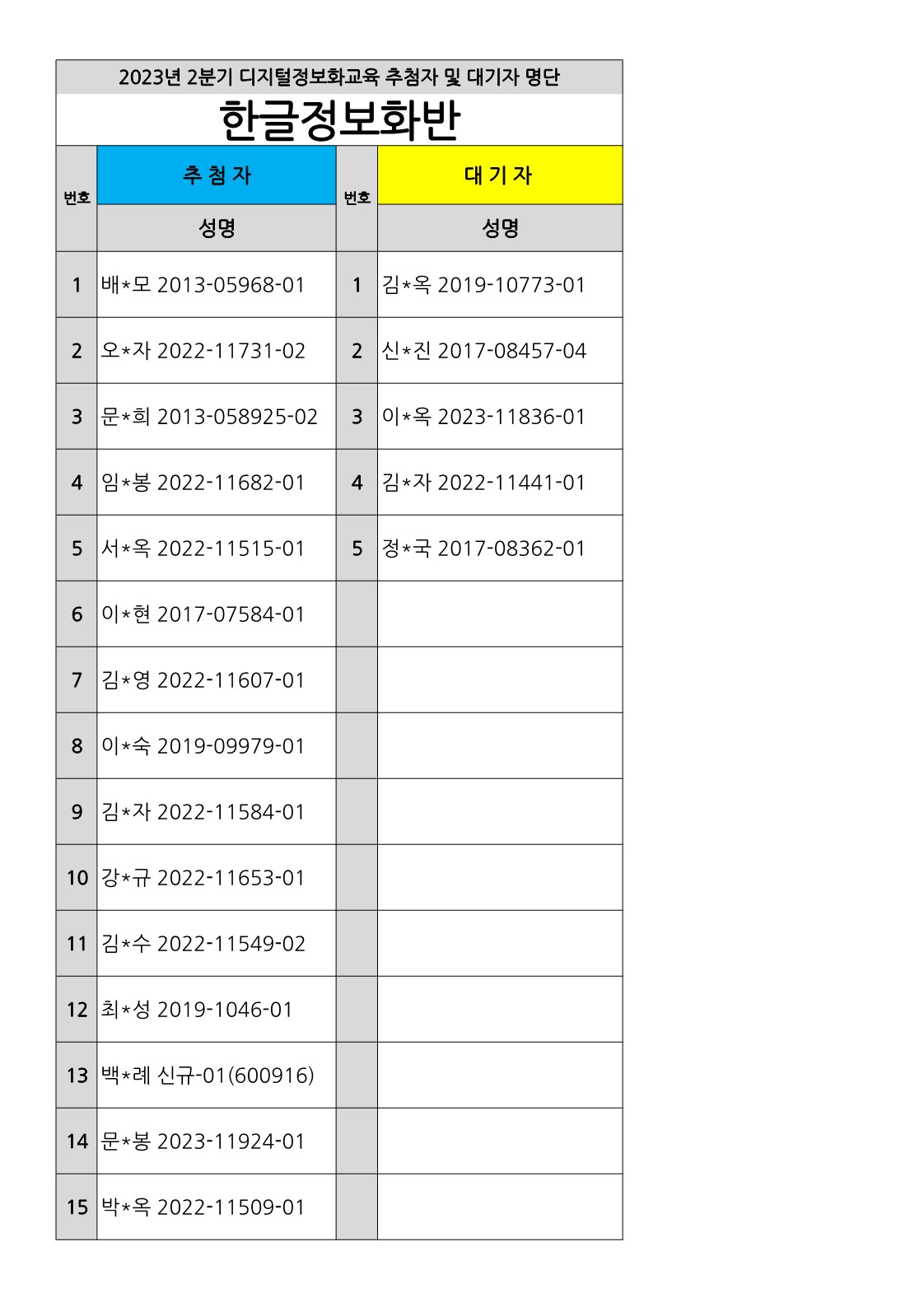 [부천시소사노인복지관] 2023년 상반기 배움교실, 2분기 정보화교육 추첨자 및 대기자 결과 확인