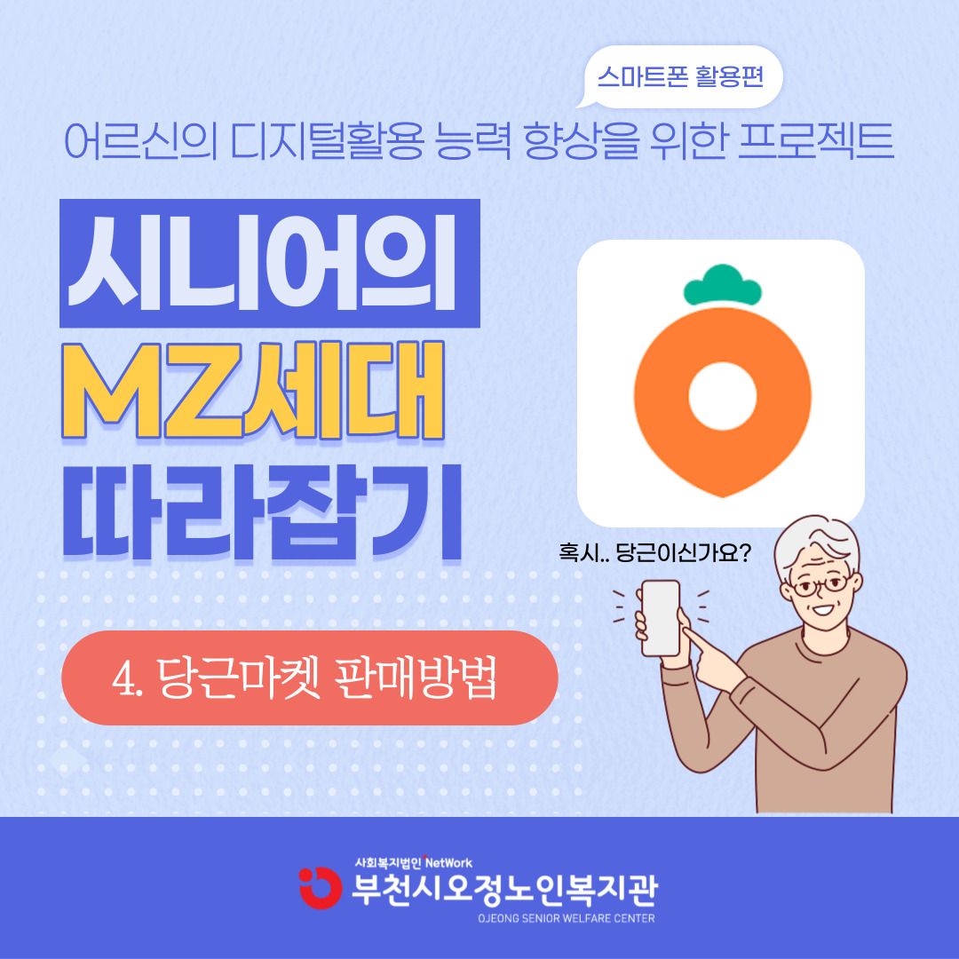 부천시오정노인복지관에서는 매주 목요일! 어르신의 디지털활용 능력 향상, 최신 트렌드 경험을 위한 '시니어의 MZ세대 따라잡기' 게시물을 업로드 합니다.