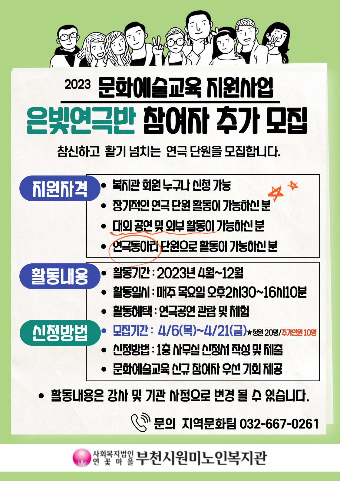 2023년 문화예술교육지원사업 "은빛연극반" 참여자 추가모집