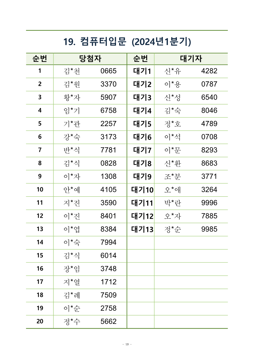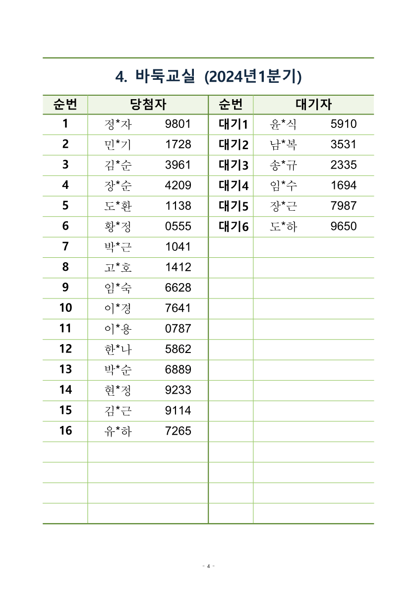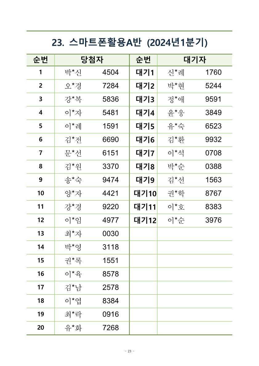 [부천시오정노인복지관] 2024년 1분기 평생교육&정보화교육 추첨결과 공지