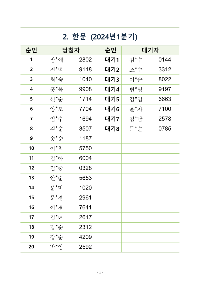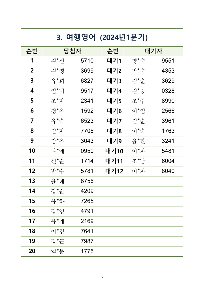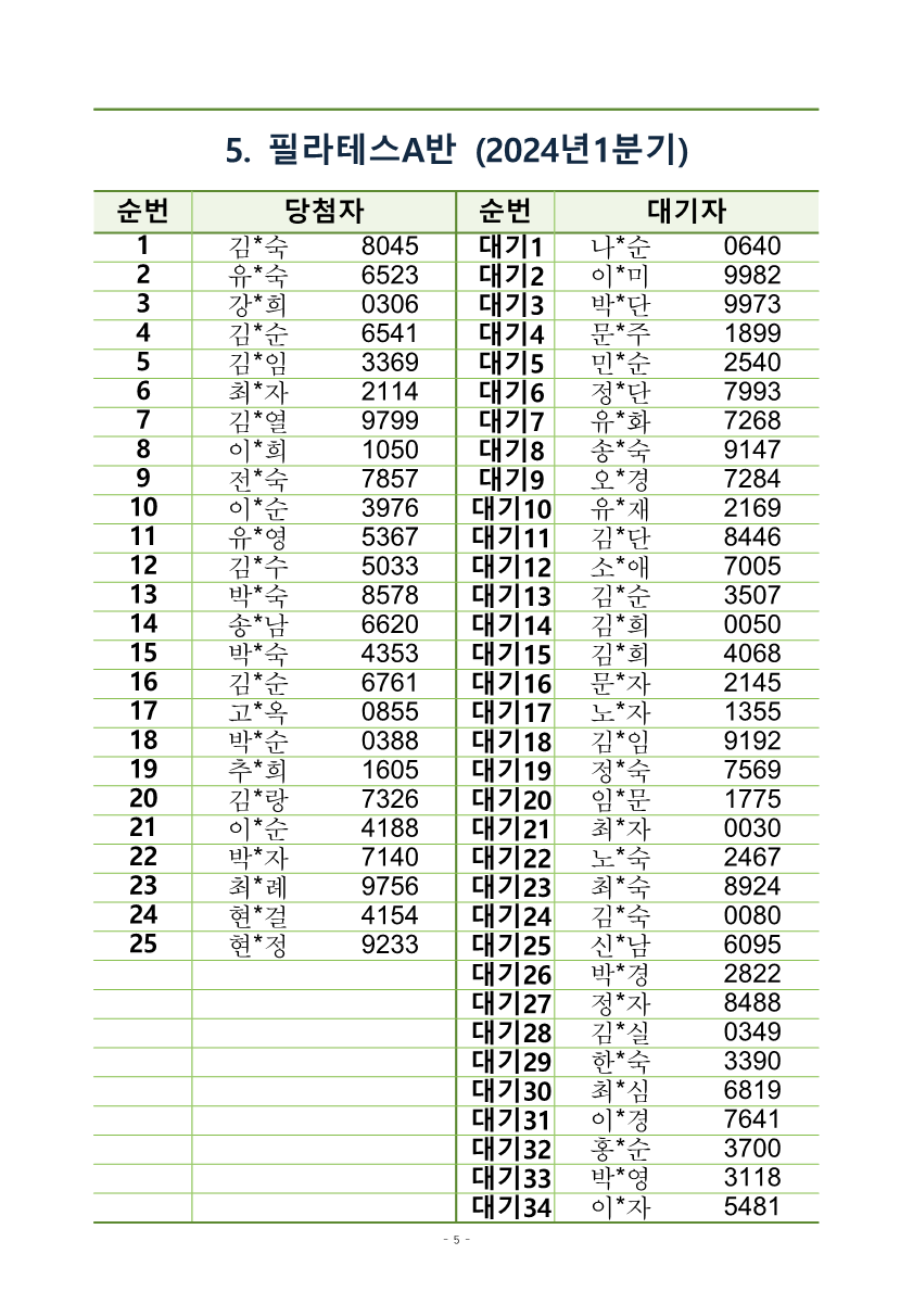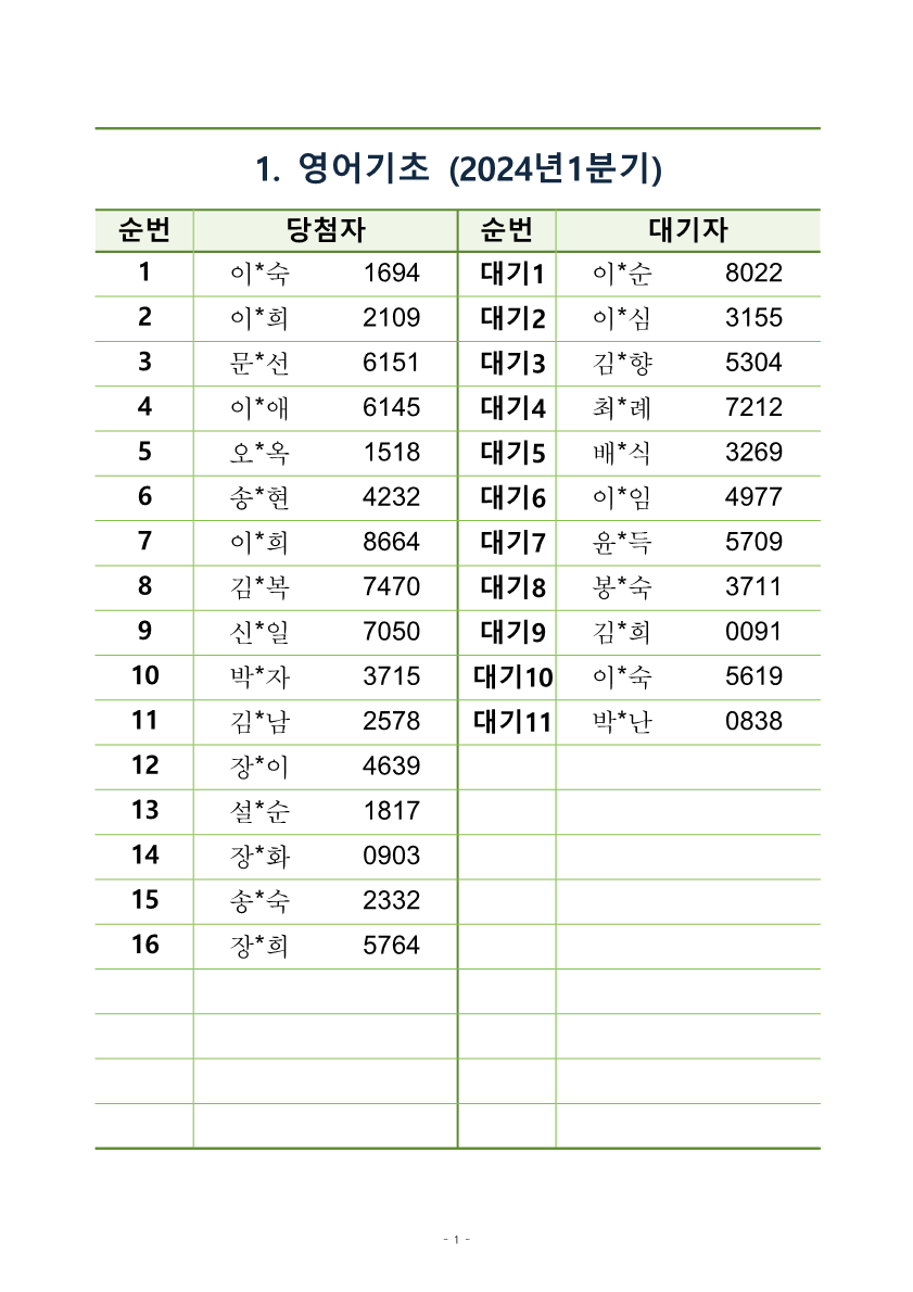 [부천시오정노인복지관] 2024년 1분기 평생교육&정보화교육 추첨결과 공지