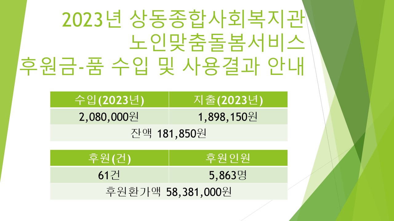 [상동보고] 2023년 노인맞춤돌봄서비스(상동복지관) 회계결산보고