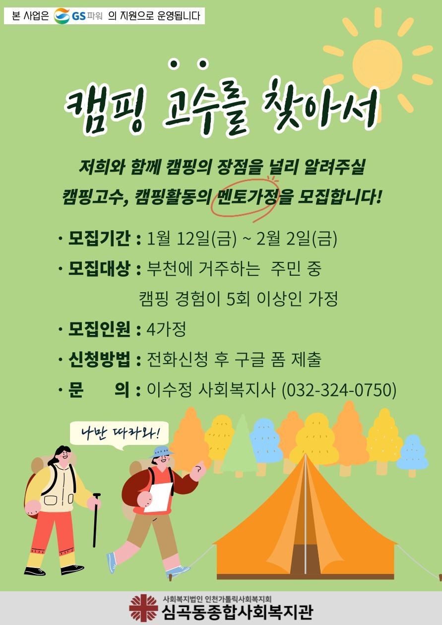 2024년 심곡동종합사회복지관 프로그램 참여자, 멘토 모집 안내