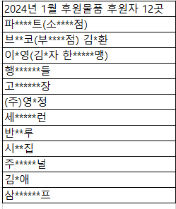 2024년 1월 후원금품 후원자 명단 입니다. 저희 복지관과 함께 해주셔서 감사합니다.