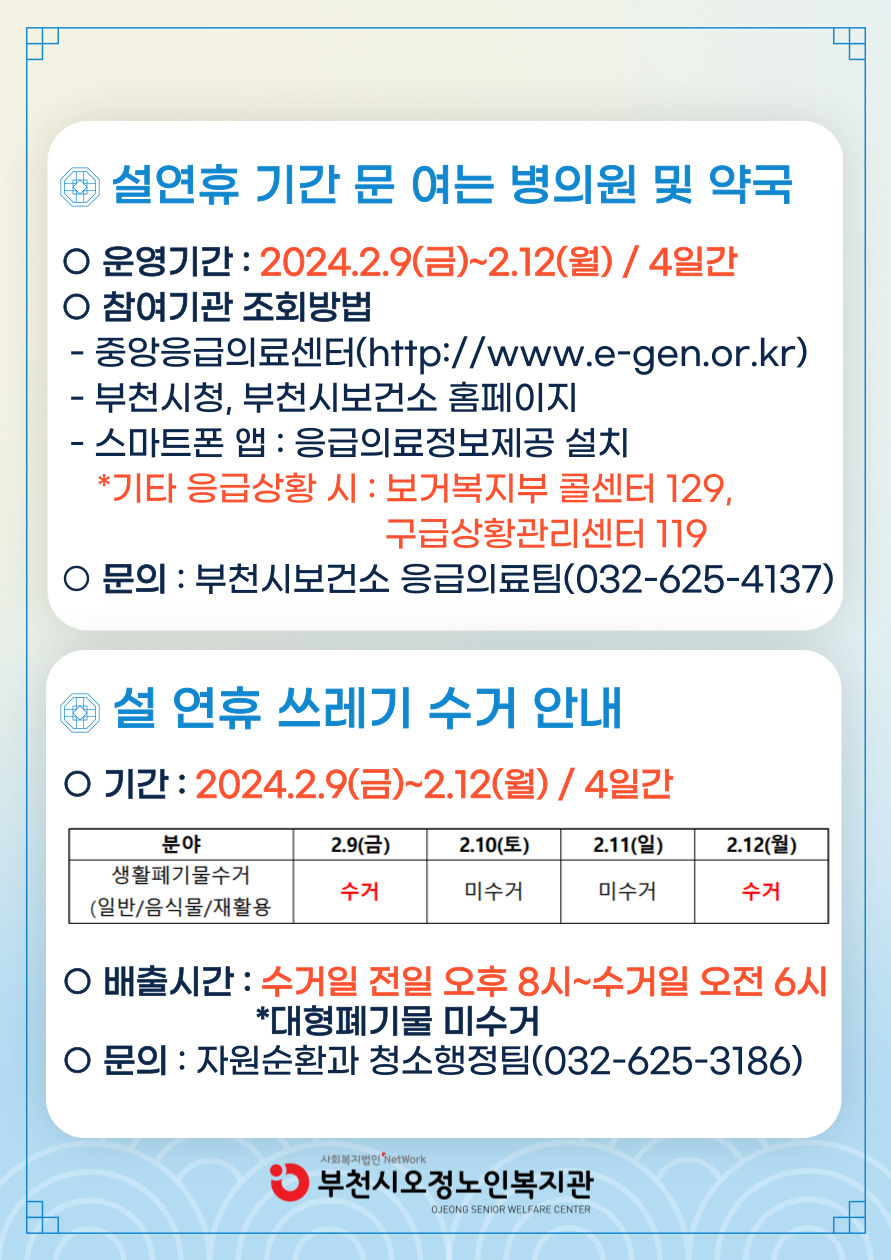아울러, 부천시 설 연휴 종합대책을 확인하시어 안전하고 건강하게 명절 보내세요!