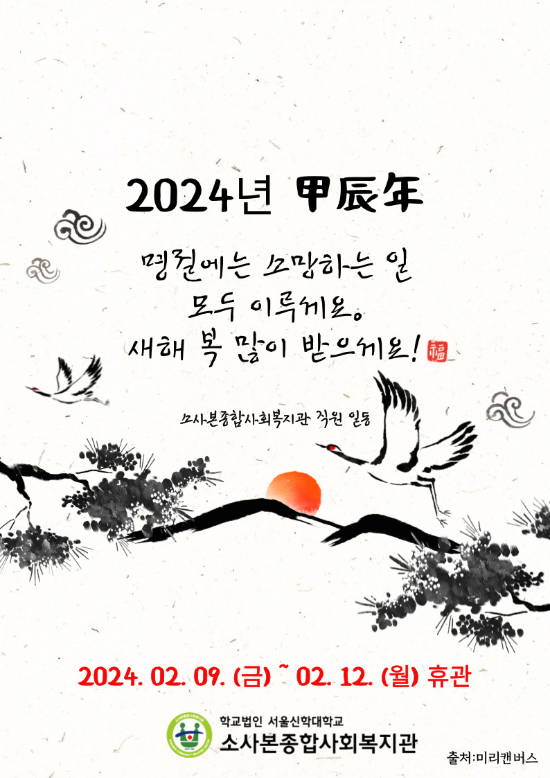 [지역사회조직}2024년 설 명절 연휴 안내 (휴관 안내)