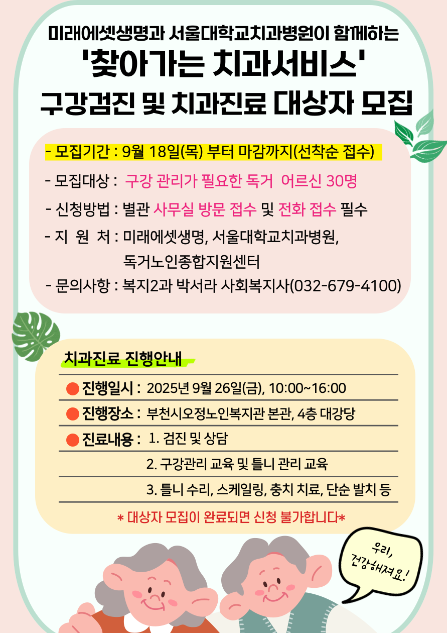 미래에셋생명과 서울대학교치과병원이 함께하는 '찾아가는 치과서비스' 구강검진 및 치과진료 대상자 모집