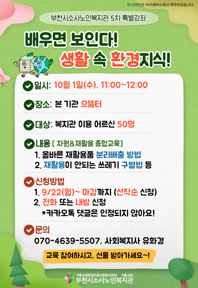 [노년사회화교육사업] 2025년 5차 특별강좌 '자원&재활용 종합교육' 참여자 모집