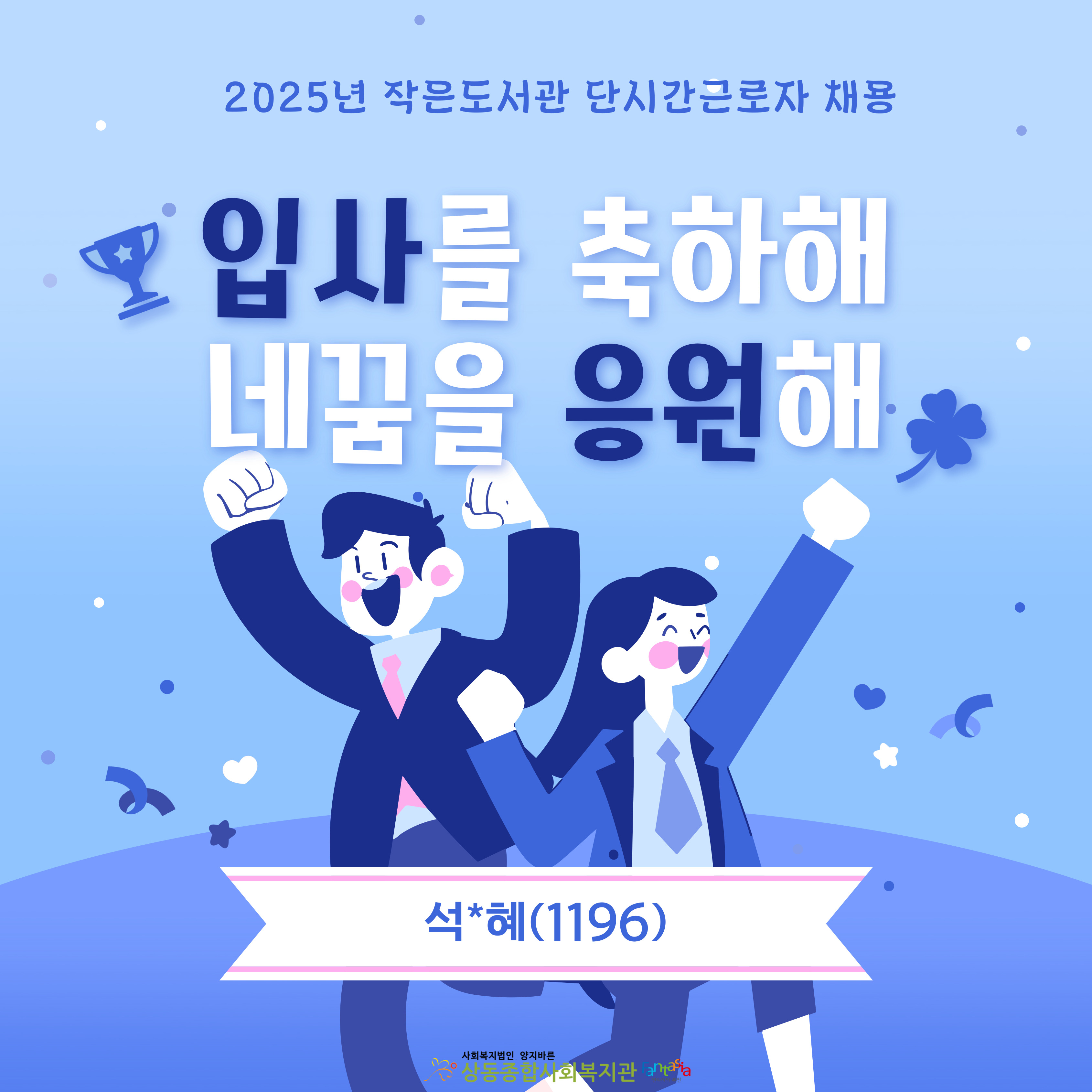 [상동종합사회복지관] 2025년 상동어울마당작은도서관 단시간근로자 채용 합격자 공고