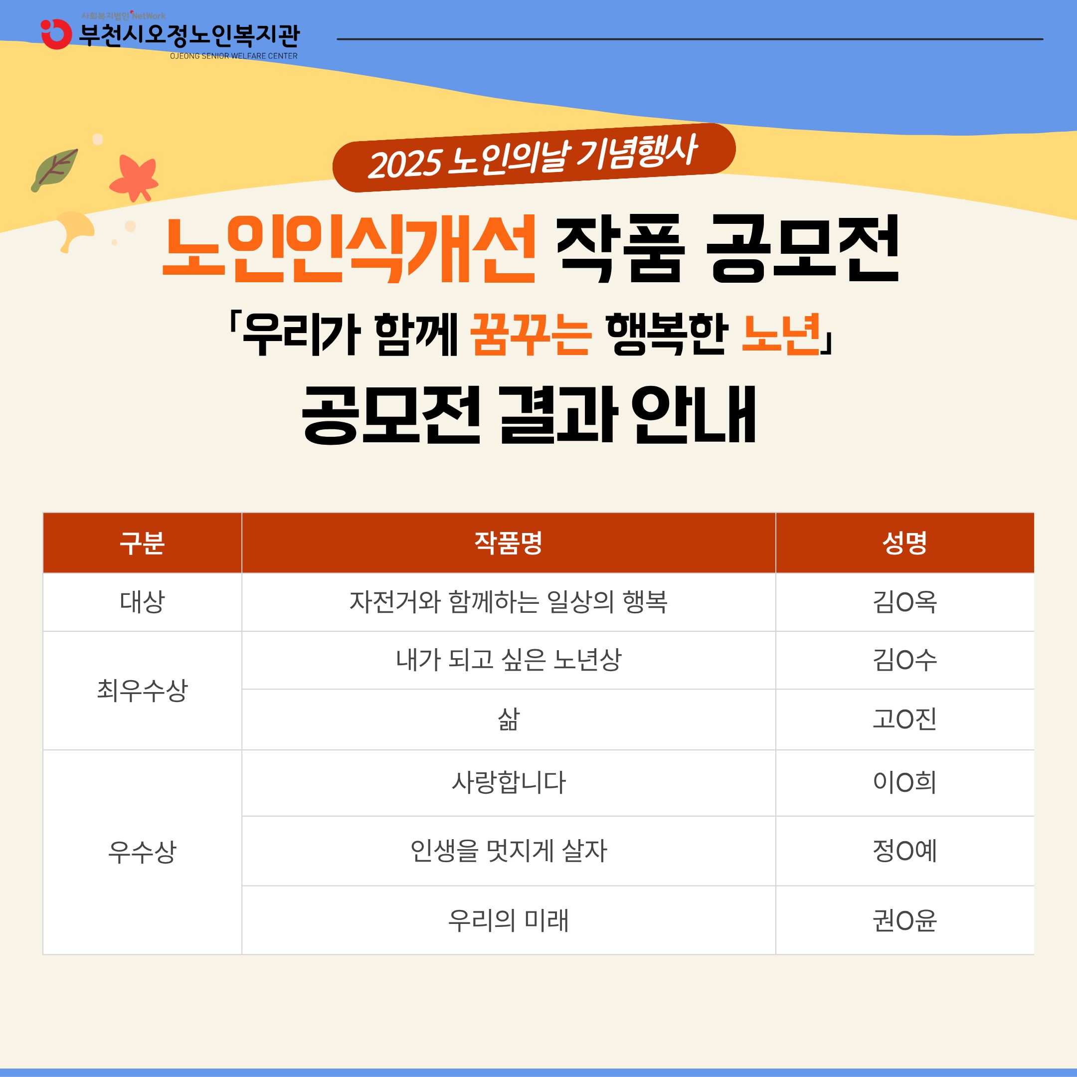 부천시오정노인복지관 노인인식개선 공모전 결과 안내드립니다.