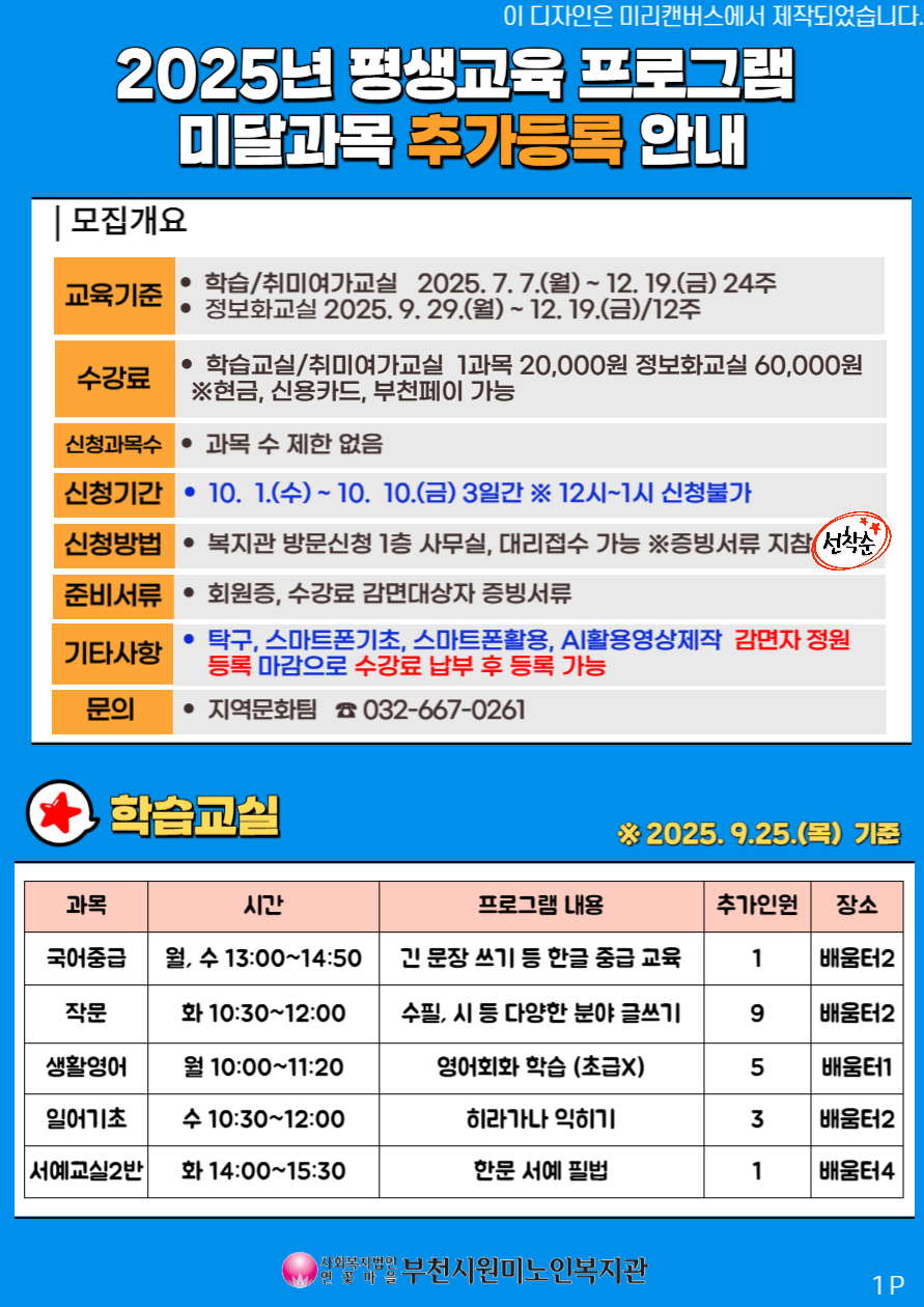 [노년사회화교육사업] 2025년 4분기 디지털정보화교실...