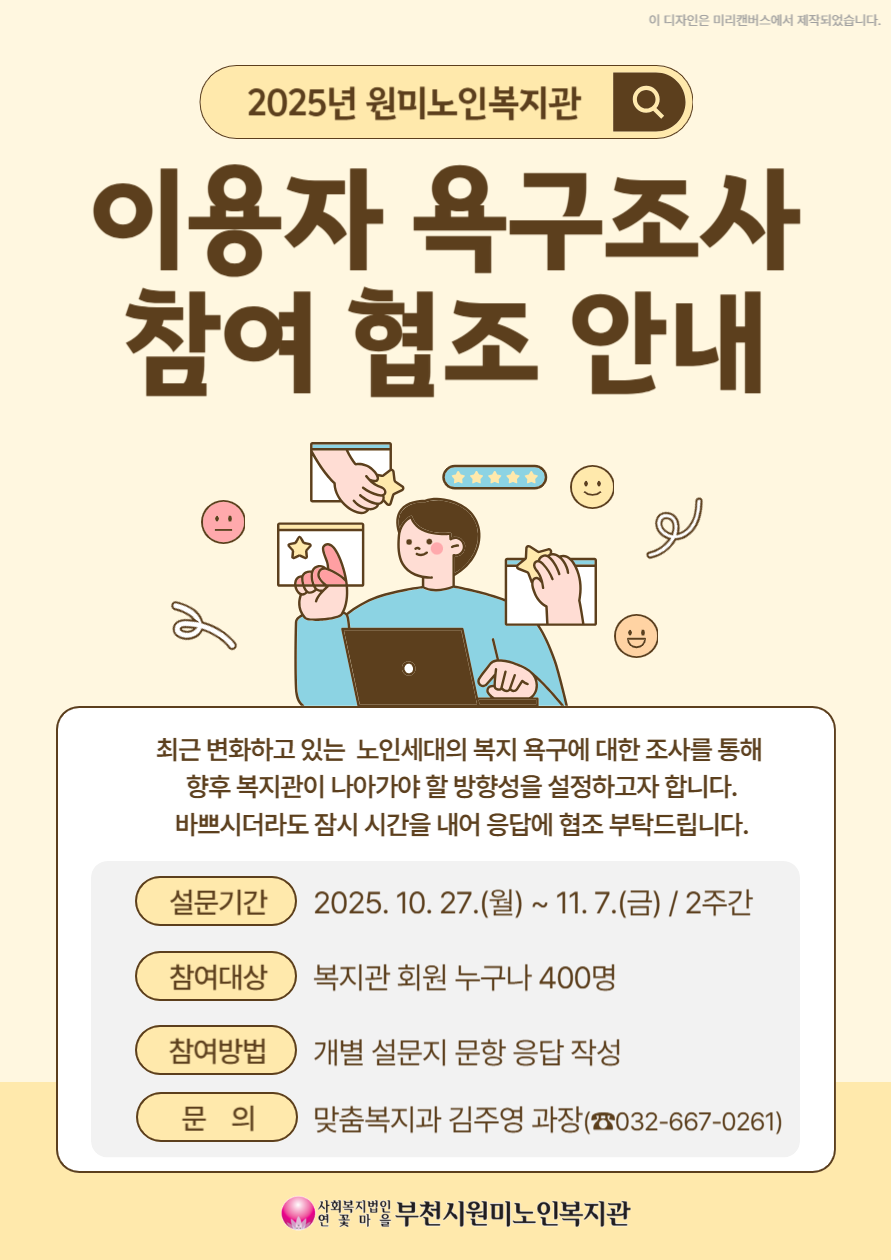 원미노인복지관 이용자 욕구조사 참여 협조 안내