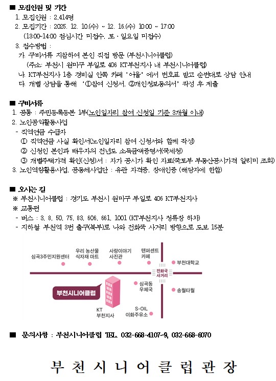 원미노인복지관 한파 쉼터 이용 안내