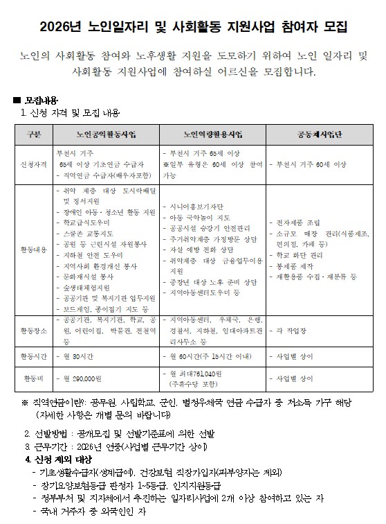 2026년 노인일자리 및 사회활동지원사업 참여자 모집 공고