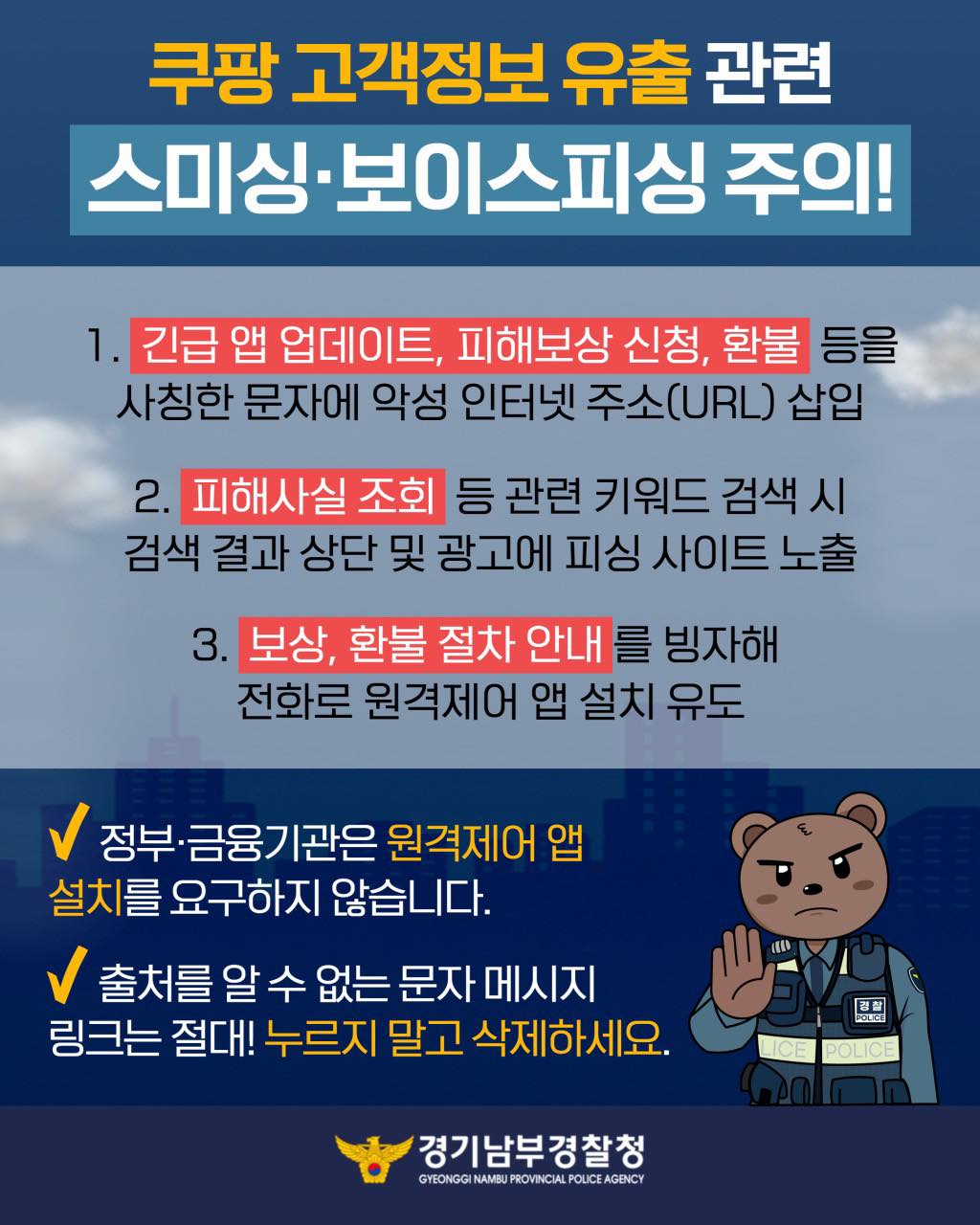 [노인권익증진사업] 쿠팡 고객정보 유출 관련 「스미싱,보이스피싱 주의」